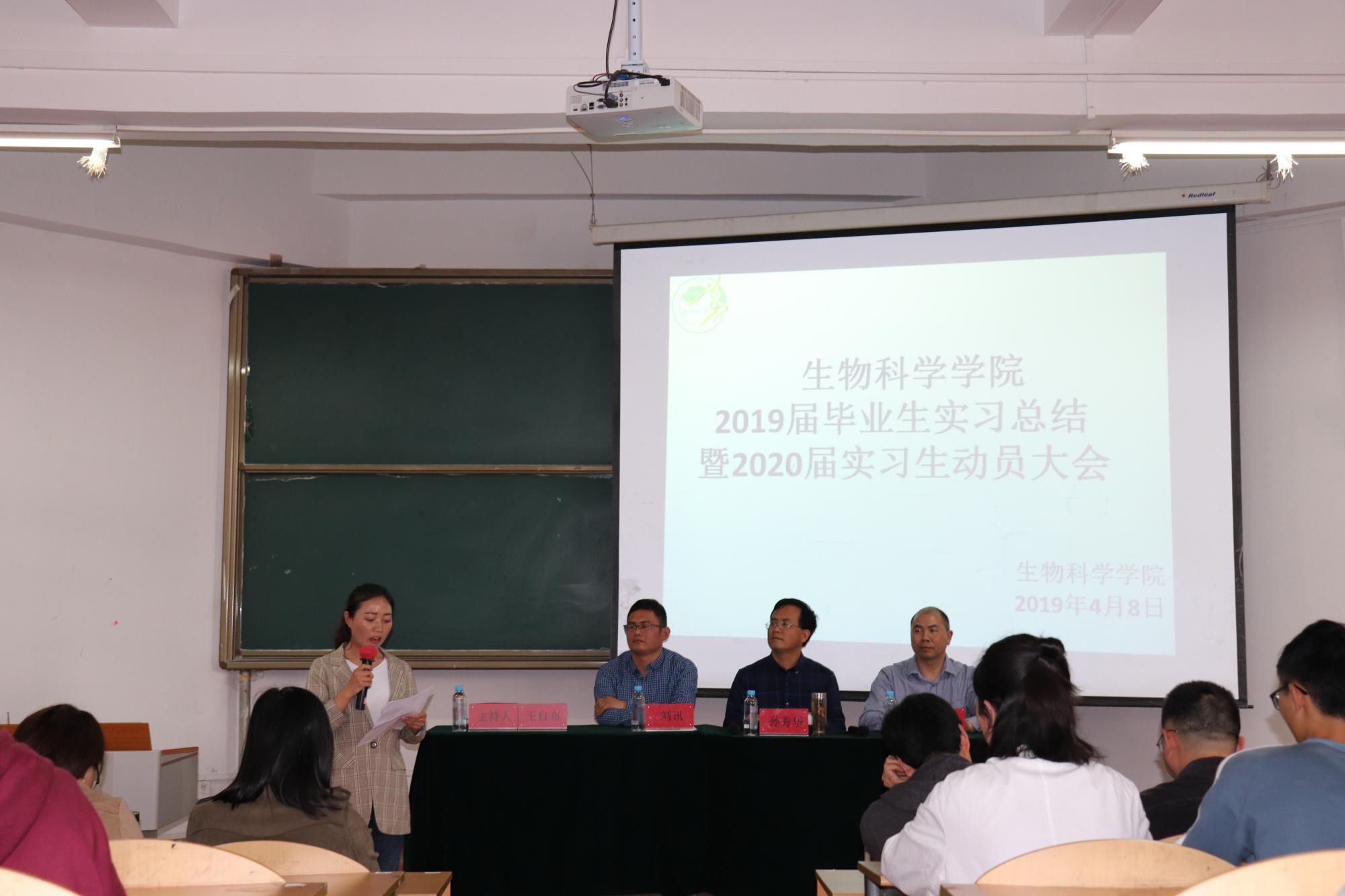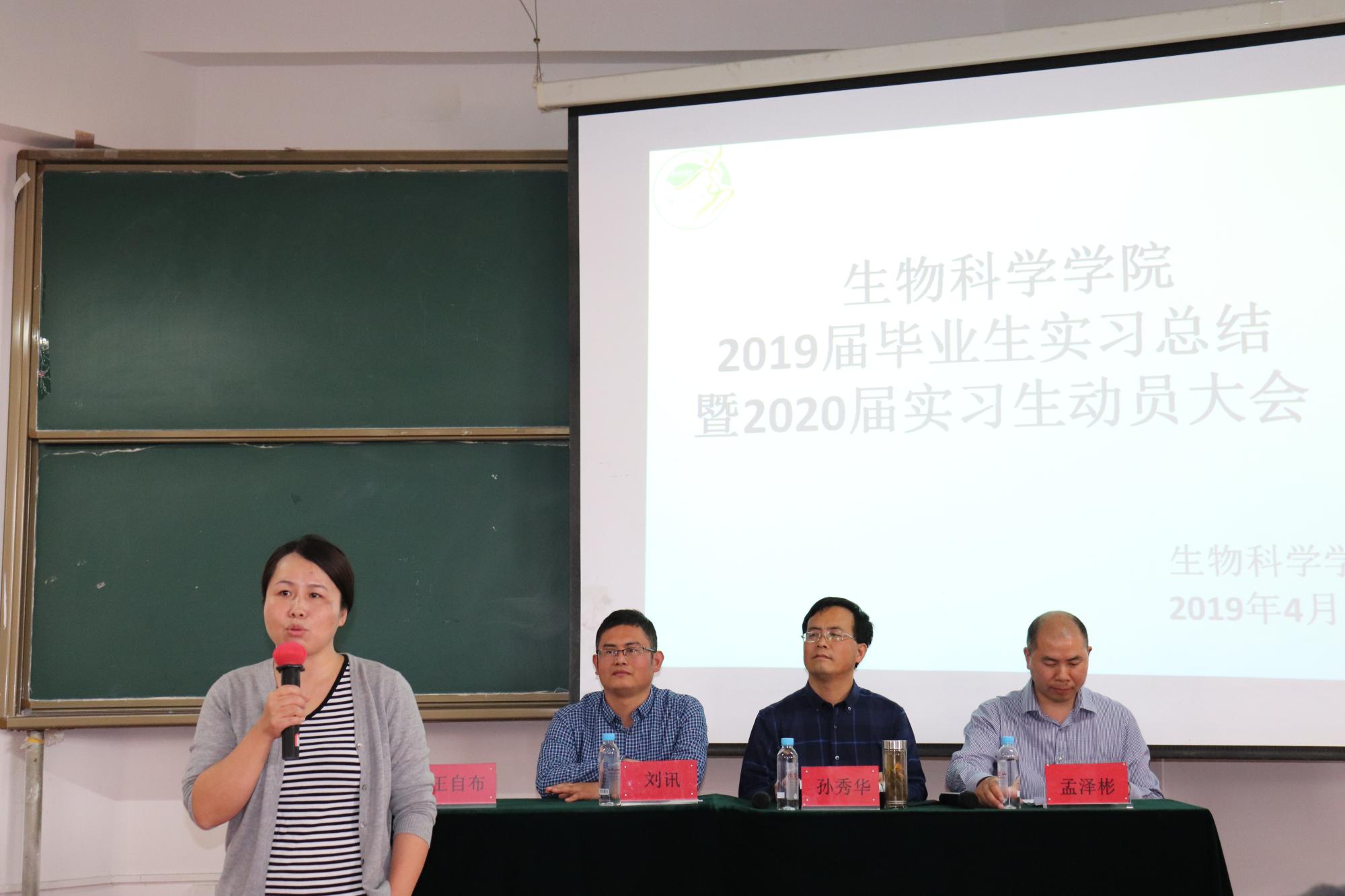 4月8日,威廉williamhill体育在宁静楼537教室召开了“2019届毕业生实习总结暨2020届实习生动员大会”。公司党委副书记孙秀华、副经理刘讯、副经理孟泽彬、系主任王自布,指导教师邓可、钱长江、符裕红、廖兴刚、刘华涛、刘树文、夏卉芳、张荣祥、郭玉红、曹剑锋、杨燕,辅导员梁涛、李育芳,以及2019、2020届生物科学专业全体员工参加了此次会议。会议由王自布主持。