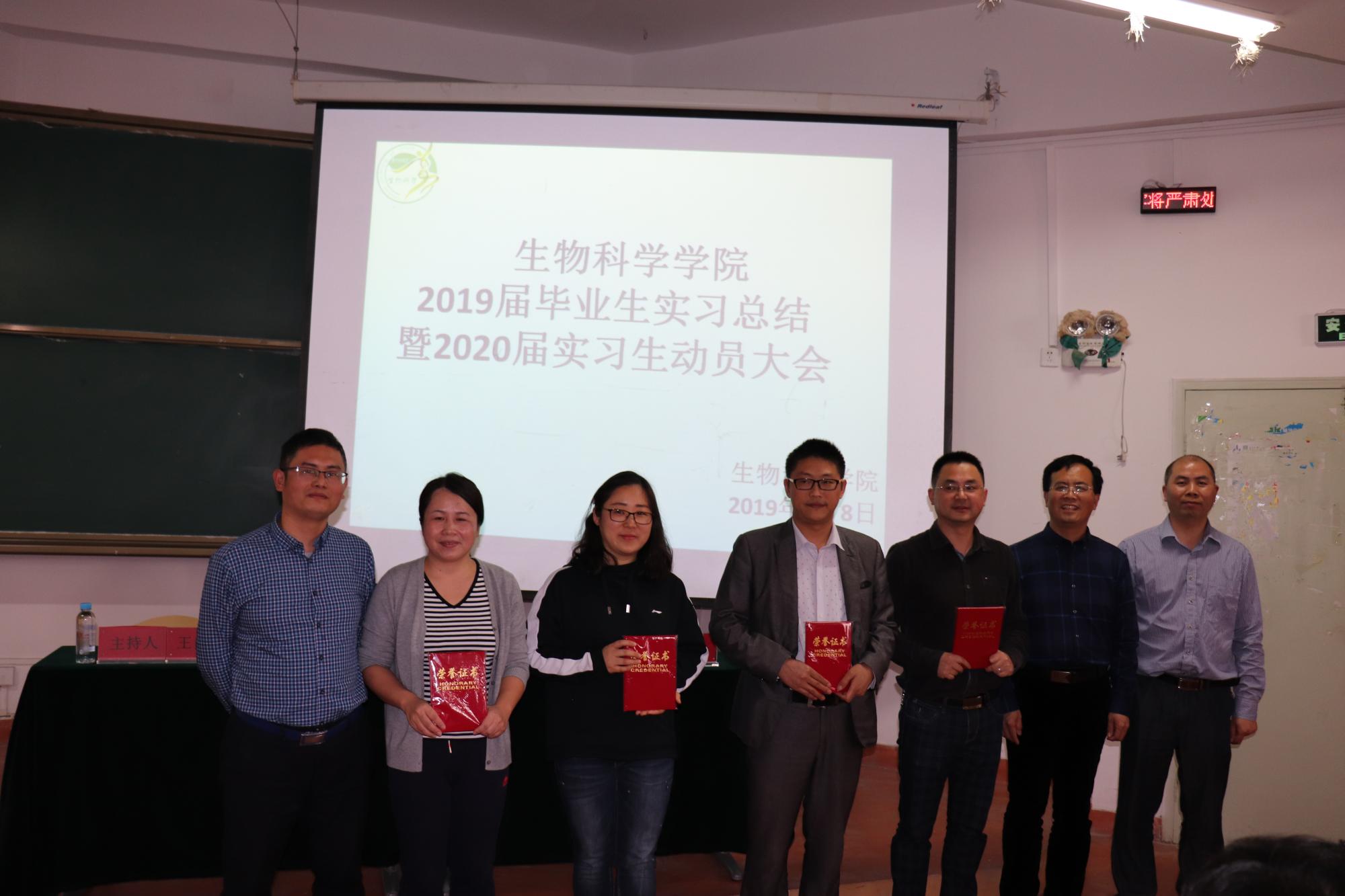 会上,孟泽彬副经理首先总结了2019届毕业生的实习情况,对同学们的表现给予高度的评价,同时也指出了存在的不足,并表示将在今后的实习工作中逐步完善。随后,孙秀华副书记宣读了“优秀实习指导教师和优秀实习生”的表彰决定,并为她们颁发了荣誉证书。接着,优秀实习指导教师代表邓可发言,她分享了自身多年的工作经验,并预祝同学们都能成为一名优秀的生物教师。紧接着,优秀实习生丁运也从不同角度、不同方面分享了实习期间的收获和体会。之后,系主任王自布解读了2020届毕业生实习方案。
