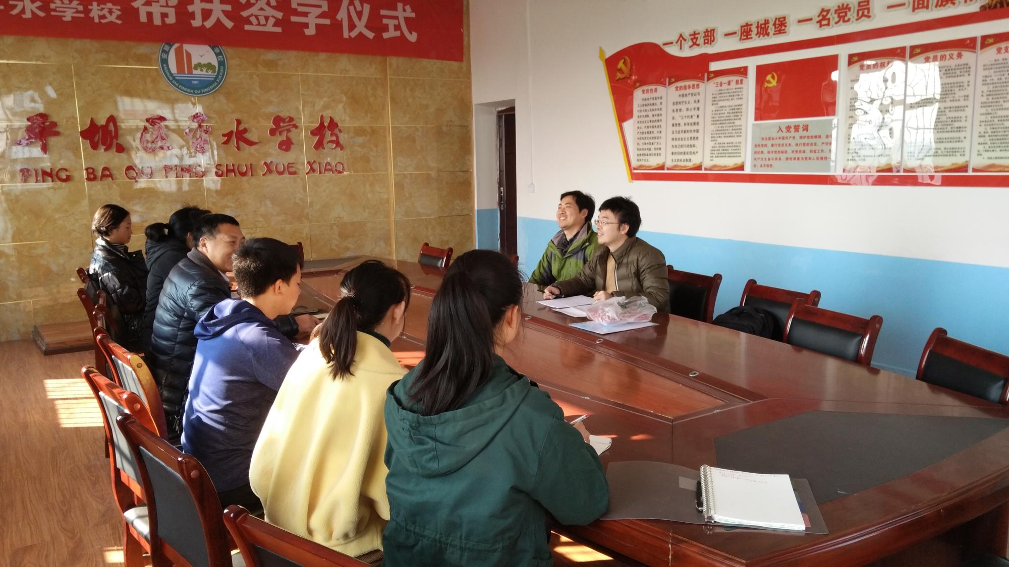 喻浩等认真听取了各校领导和老师对实习工作和员工实习情况的介绍,了解了公司实习生在实习单位的工作、学习和生活;会上,各校领导和相关指导教师均对公司实习生给予了高度肯定,具体表现在公司的实习生均在两校的一线教学岗位承担了重要的教学任务,并取得了显著成果:其中平水公司的很多班级在由公司员工承担课程的生物、物理等学科上均取得了明显进步;红湖中学则在今年的平坝区体育运动会上取得了头名的成绩,其总分领先第二名公司超过80分,该校相关领导和老师认为公司的两位体育专业的实习生给他们的训练提供了实质帮助。喻浩对校方领导及指导教师表示了感谢,同时也对实习生提出了要求和期望。双方表示希望今后能够加强交流共建,实现合作双赢。