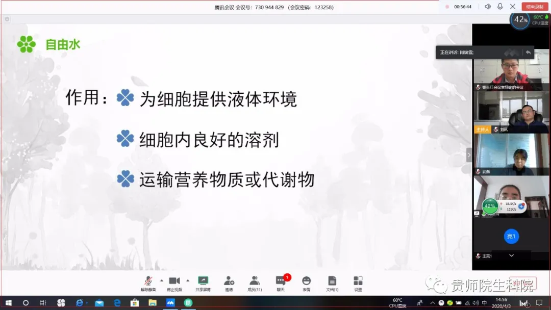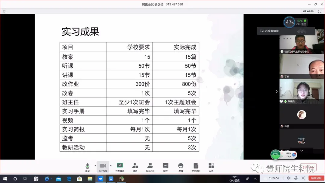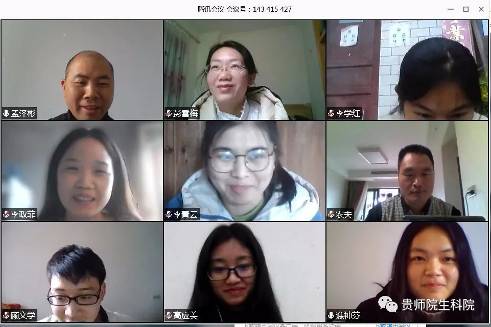 各组均采用腾讯会议汇报成果及讲课,临近评定前各组组长均把进入腾讯会议的方式发给教学科研科科长吴超,由吴超公布在公司工作的QQ群和微信群,并转到16级、17级、18级和19级生物科学专业班级群,因此每场成绩评定会都有60人以上的员工参加,每组汇报和评定过程均有视频录像。评定过程于4月1日至4月3日顺利完成。