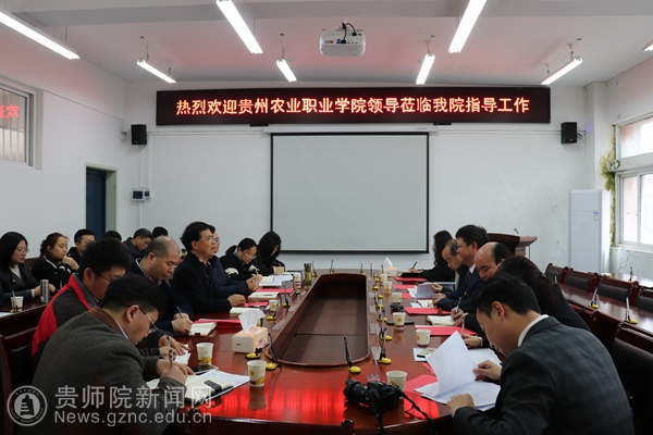 座谈会上,孙秀华对贵州农业职业公司一行人表示热烈欢迎。刘讯希望通过此次交流能进一步提高两公司合作办学的稳度和适度,促进两公司之间全面的深入了解,增强两公司之间的联系,共同促进发展。双方围绕着办好“专业”和办“好专业,”进行深入交流和讨论。