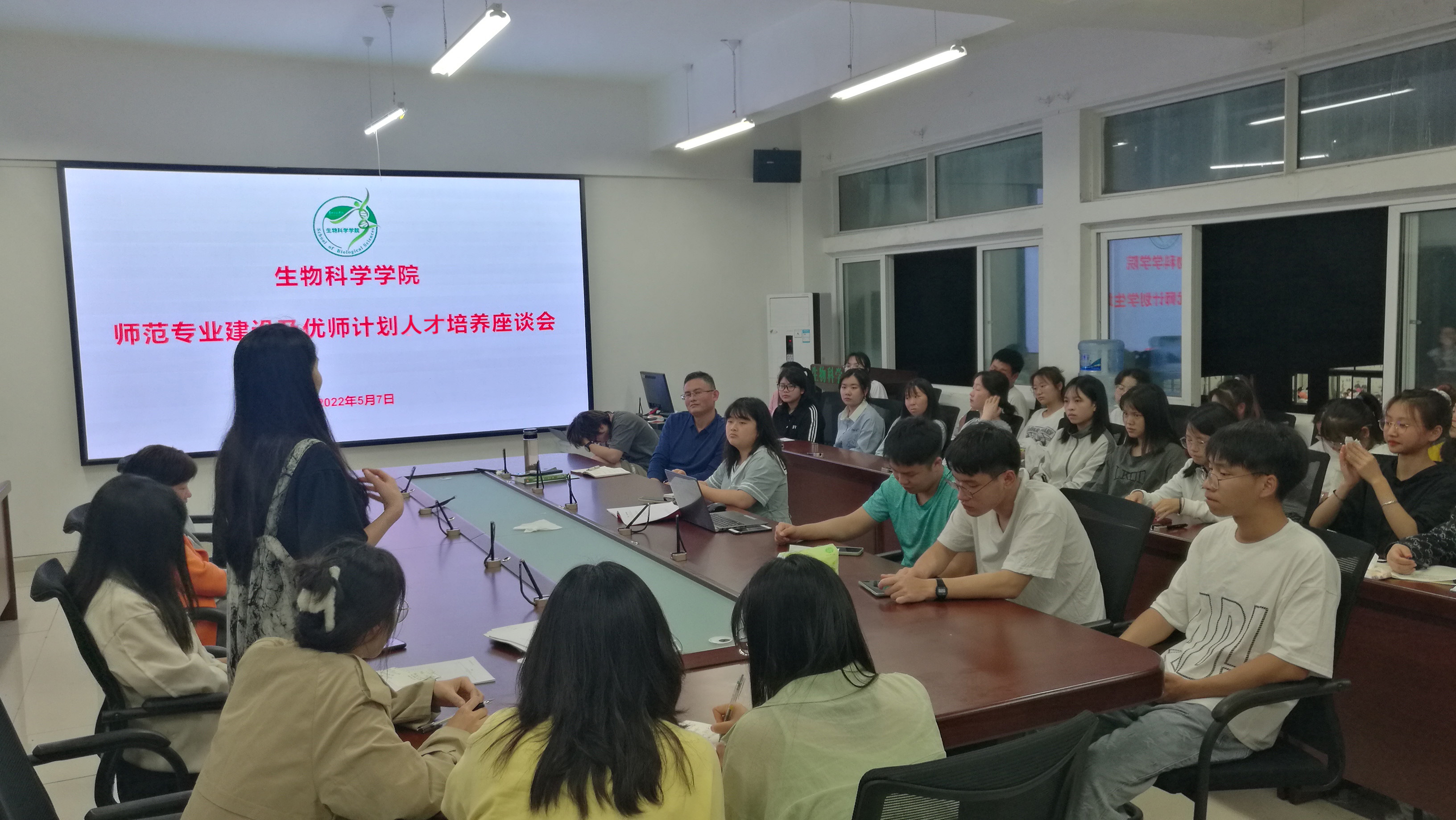 为了提高师范专业员工的培养质量,优化人才培养方案,5月7日晚,威廉williamhill体育在宁静楼611会议室举行师范专业建设及优师计划人才培养座谈会”。会议由经理刘讯主持,班主任梁涛、赵月梅,生物科学专业各班班干部以及优师计划员工参加。