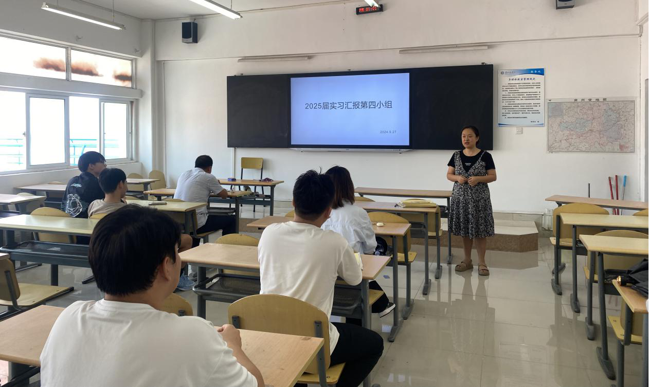 实习汇报采用分组与指导教师回避相结合的方式进行,共分为五个小组,组长从公司教学工作委员会委员进行选取,分别由任翠娟经理、孟泽彬副经理、钱长江副经理、罗倩教授、武燕副教授担任,组员由生产实习指导教师担任。评定小组通过查阅员工的《实习手册》、简报、实习工作期间的照片等相关材料,听取员工从实习单位简介、工作内容、实习收获与不足等方面的PPT汇报,进行成绩评定,每组汇报和评定过程均有过程性材料。