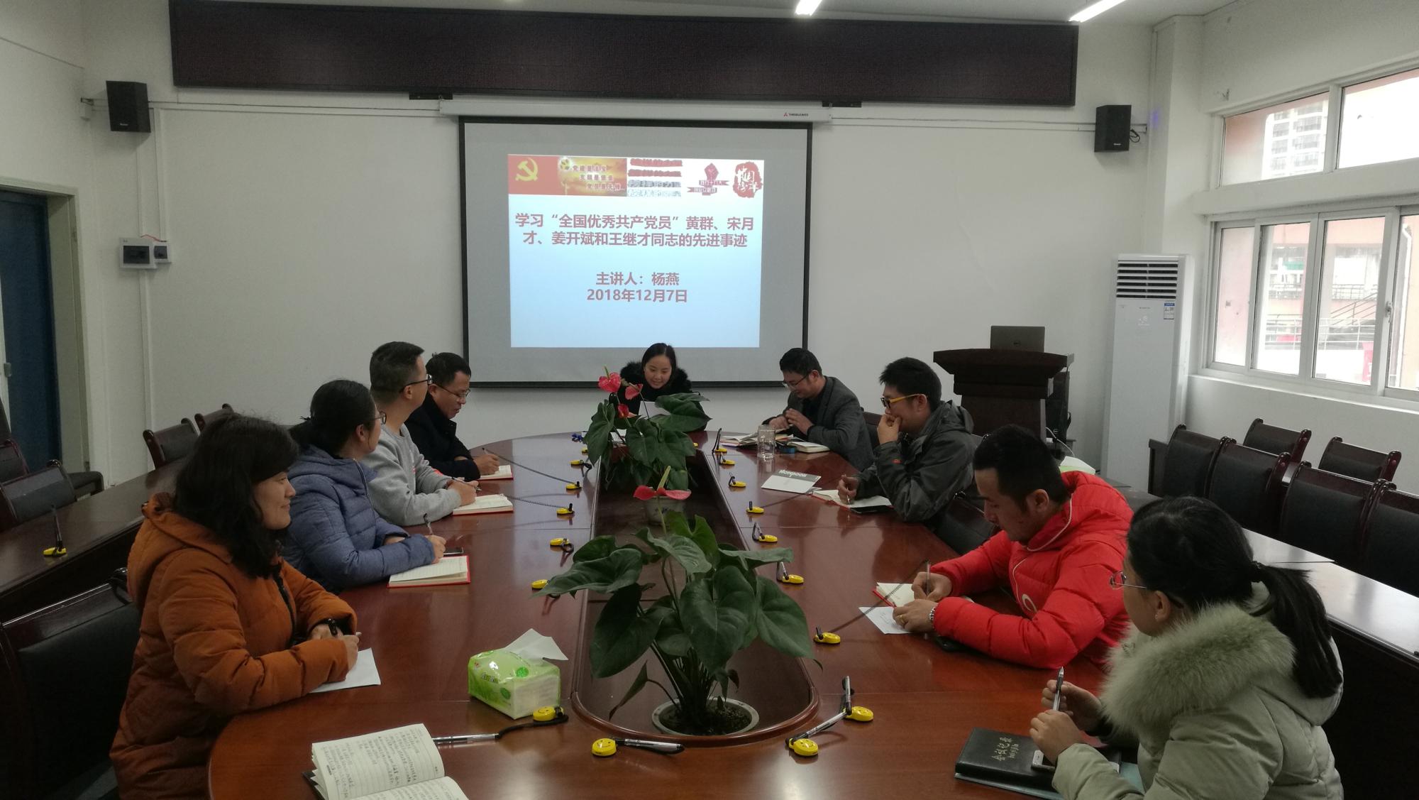 12月7日中午,威廉williamhill体育教师党支部学习“全国优秀共产党员”黄群、宋月才、姜开斌和王继才同志的先进事迹暨两学一做专题研讨会在宁静楼620会议室召开,会议由教师党支部书记杨燕老师主持,全体教师党员出席了会议。