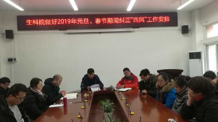 12月28日中午,公司召开教职工大会,传达了公司《关于做好2019年元旦、春节期间纠正“四风”工作的通知》。要求广大党员干部和教师严格按照《通知》要求,认真抓好元旦、春节期间的廉政建设工作。