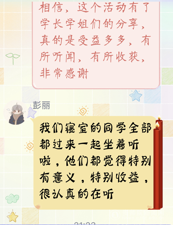 群贤毕集,心与心的沟通,思想的碰撞,灵魂的升华。本次主题党日交流会活动完美结束,感谢学长学姐们用日积月累的经验帮助同学们那初生牛犊的闯进,用渐趋渐广的眼界帮助同学们遨游知识海洋的航道。同时活动的效果反响很棒,同学们纷纷表示这样的主题党日活动非常有趣,在欢快的气氛中学习知识、解答疑惑、获益良多。