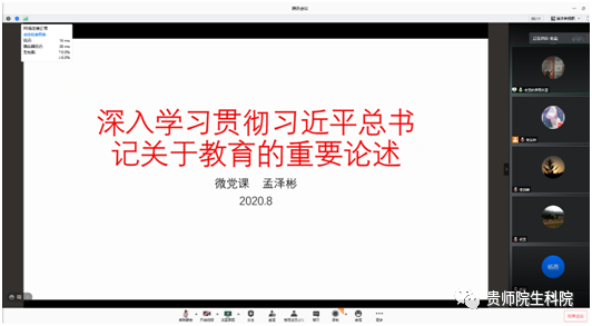 2020年8月30日晚,威廉williamhill体育教师党支部全体党员教师通过腾讯会议进行“党课开讲啦”活动,公司党总支书记孙秀华、经理兼党总支副书记刘讯、公司副经理孟泽彬和党总支纪检委员何勇分别为全体教师党员上党课。本次“党课开讲啦”活动由公司教师党支部书记张运林主持。