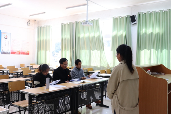 答辩前期,员工党支部入党积极分子负责布置现场以及现场秩序的维持以便本次答辩的顺利进行。首先,王溯依次为被答辩人讲解本次答辩交流分为自我介绍、抽题回答、自由提问三个环节。接着,被答辩人按照顺序排队依次进入教室进行答辩,答辩人认真听着每个员工的自我介绍,并对其抽取的题目进行提问,根据被答辩人的回答给予建议及评价。答辩过程中,员工党支部入党积极分子负责计时提醒被答辩人时间,保证每场答辩的公平公正公开。最后,历经一个半小时的紧张答辩最终取得圆满结束。