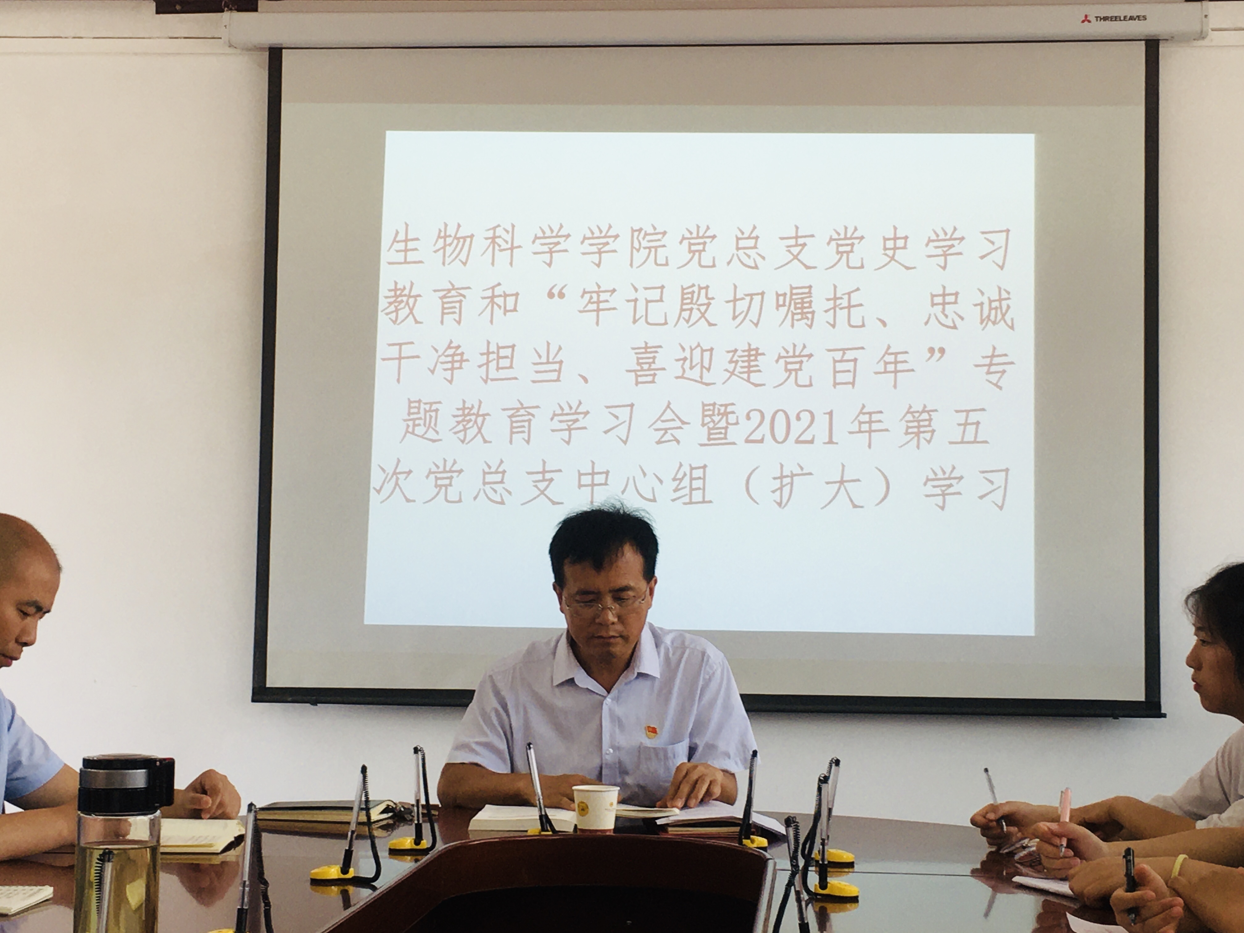 为深入贯彻落实公司党委开展党史学习教育的安排部署,引导师生持续重温党的历史,感悟思想伟力,不断激发奋进力量,生物科学公司党总支于6月23日星期三11:00在宁静楼620会议室举行党史学习教育和“牢记殷切嘱托、忠诚干净担当、喜迎建党百年”专题教育专题学习会暨2021年第五次党总支中心组(扩大)学习,专题学习党的十八大以来的历史。