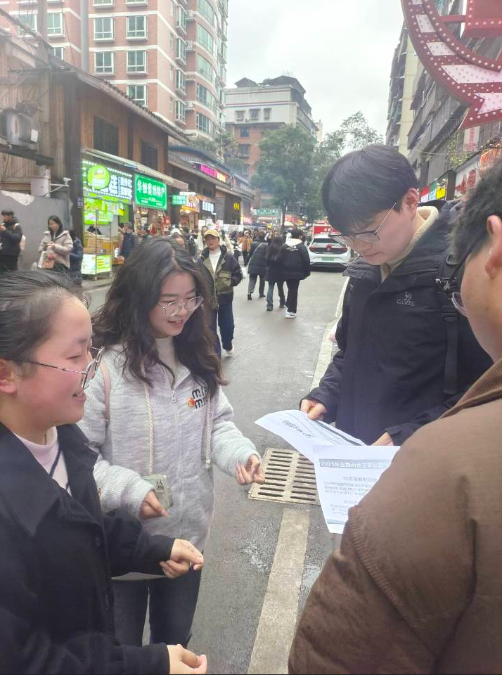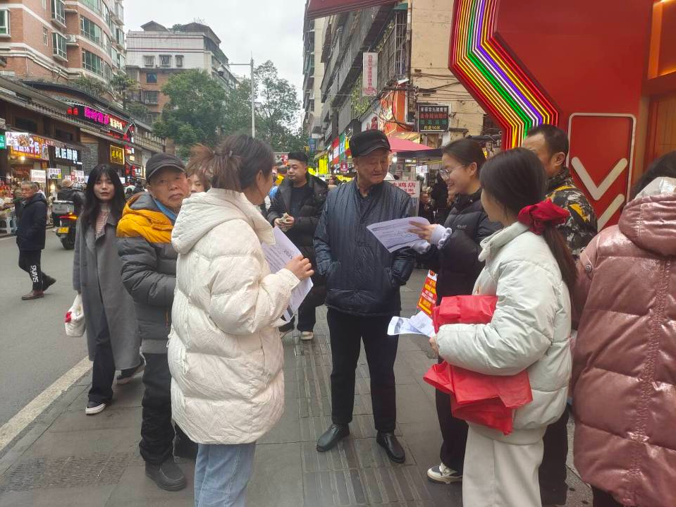 云岩区中东社区电台街有八路军贵阳交通站旧址,是党领导人民开展革命斗争历史的红色教育基地。在教育基地周围的居民区进行“两会精神进社区”宣传活动,旨在传承红色基因、践行两会精神。同学手持宣传图表,积极向街头的群众们宣传“两会的重要精神和决策部署”,用通俗易懂的语言解读政策要点,解答居民关心的问题。这一举措不仅加深了普通民众对国家大政方针的理解,也进一步增强了同学们自身的使命感和责任心。