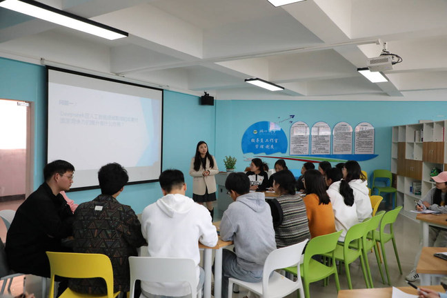 王溯主要以火爆出圈的deepseek创建为背景,通过案例解析、问题探析等方式,从“创新发展,经济发展角度、开放合作、国际竞争”四个角度,围绕“创新发展、科学家精神、个人职业规划、正确运用AI工具”四个方面,引导同学们向梁文峰学习,自主创新,成为国家创新型人才,不断增强民族自豪感与责任感,把握当下,以科学家精神为指引,磨炼永不放弃的品格。在班会课上,同学们基于自身实际情况,主动将专业发展与个人职业成长联系在一起,开展交流讨论,分享各自的观点与计划。最后,王溯从学习与生活中的创新精神实践、职业发展融入国家发展作了班会课总结,鼓励同学们将“小我”融入“大我”,勤勉学习,为国家发展贡献力量。