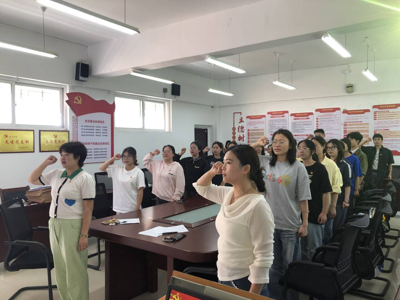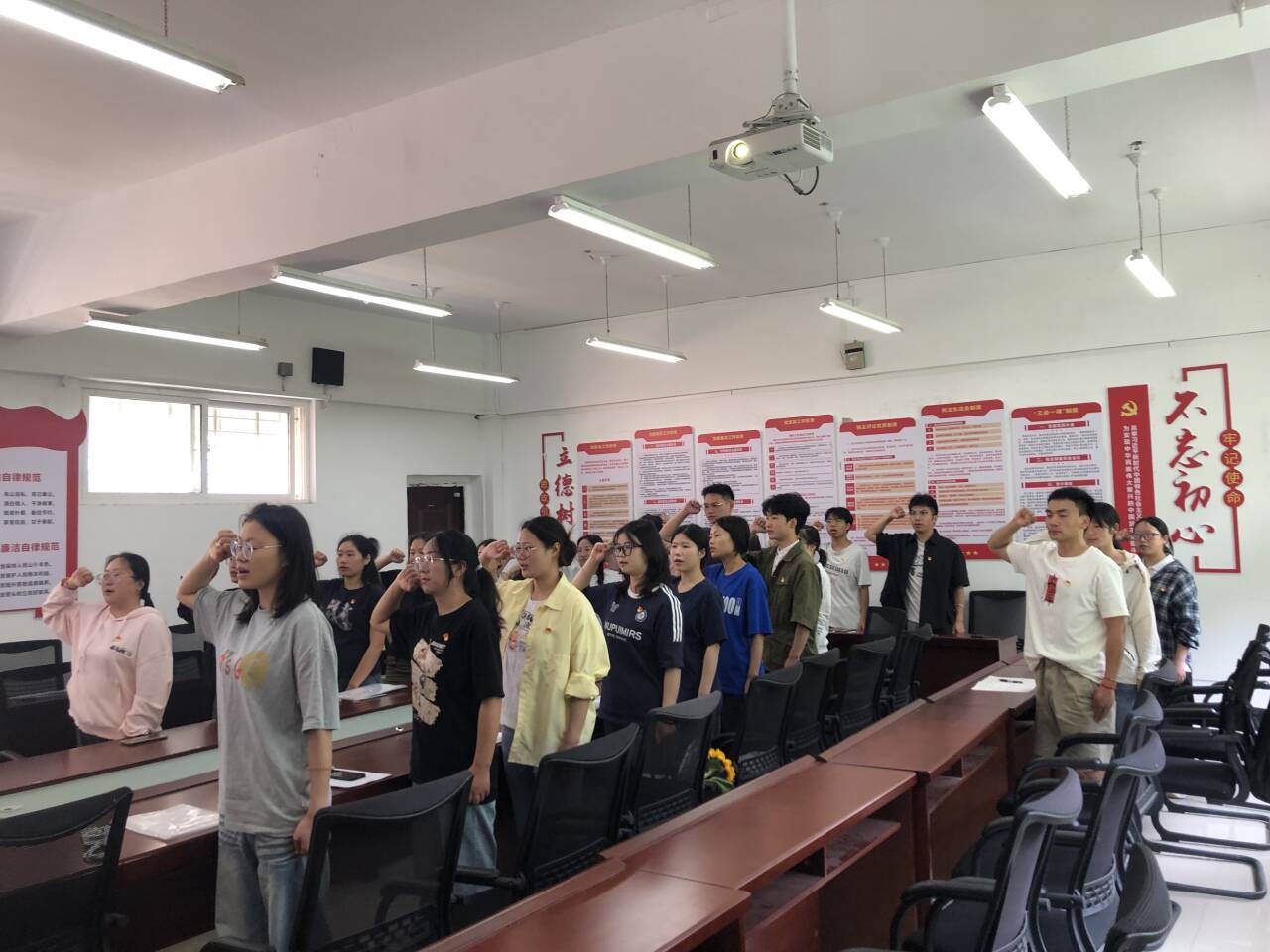 最后,在王珏的领誓下,支部全体党员面向党旗,重温了庄严的入党誓词,激励着将奔赴祖国各地的毕业生党员在新征程上踔厉奋发、薪火相传、不懈奋斗。