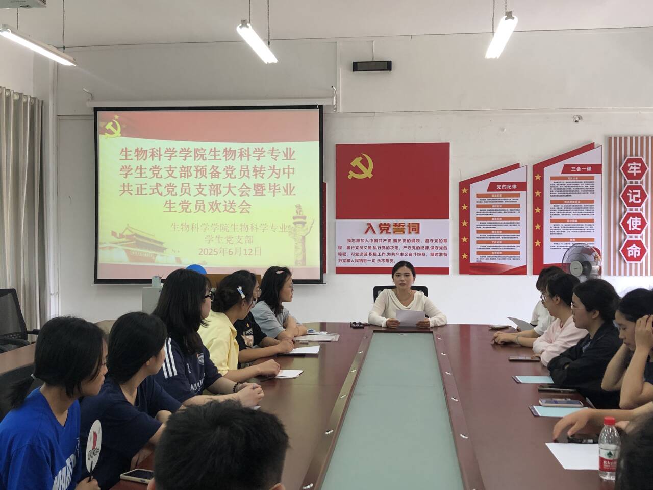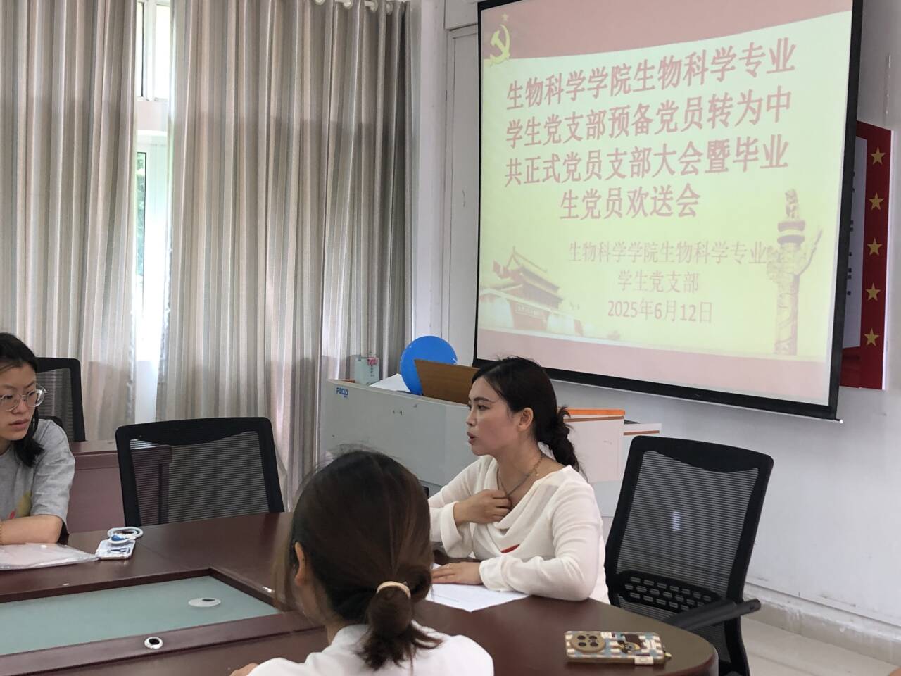6月12日,威廉williamhill体育生物科学专业员工党支部在608会议室召开预备党员转为正式党员支部大会暨毕业生党员欢送会。会议讨论并通过了王慷同志的转正申请,并为毕业生党员举行了欢送仪式。会议由党支部书记王溯主持,党委副书记王珏出席了此次会议。