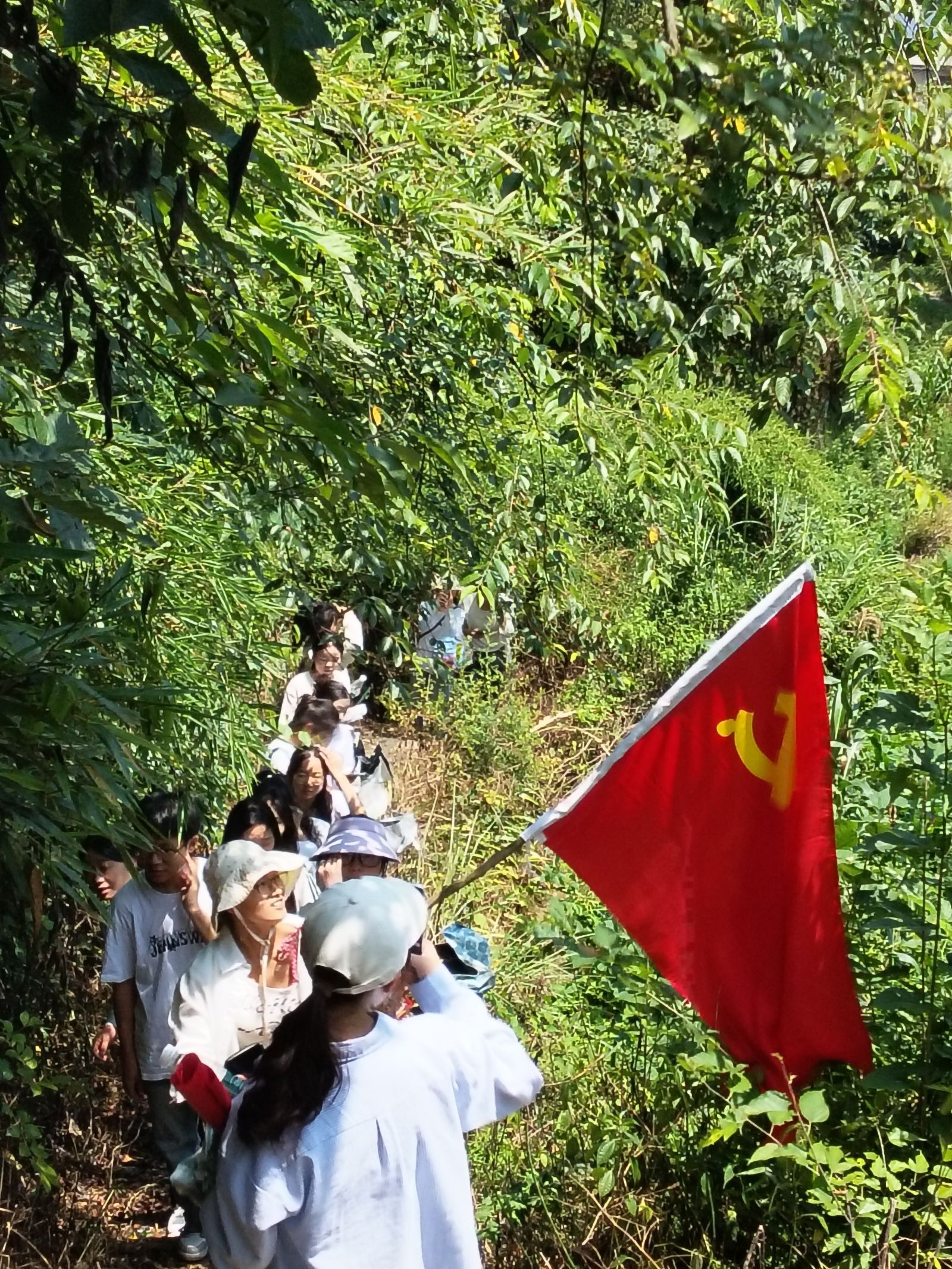 接着,实践队抵达著名的红军村黄连村。长征时期,三支红军队伍曾途经此地,村内的红军桥、红军亭与红军井等遗迹,生动体现了军民深厚情谊。队员们沿着蜿蜒山路追寻红军足迹,在炎炎烈日下艰难行进,切身感受了革命先辈在艰苦环境中的坚韧精神。这段经历让队员们深刻领悟:唯有铭记历史、珍惜当下、自强不息,才能在新征程中砥砺前行。