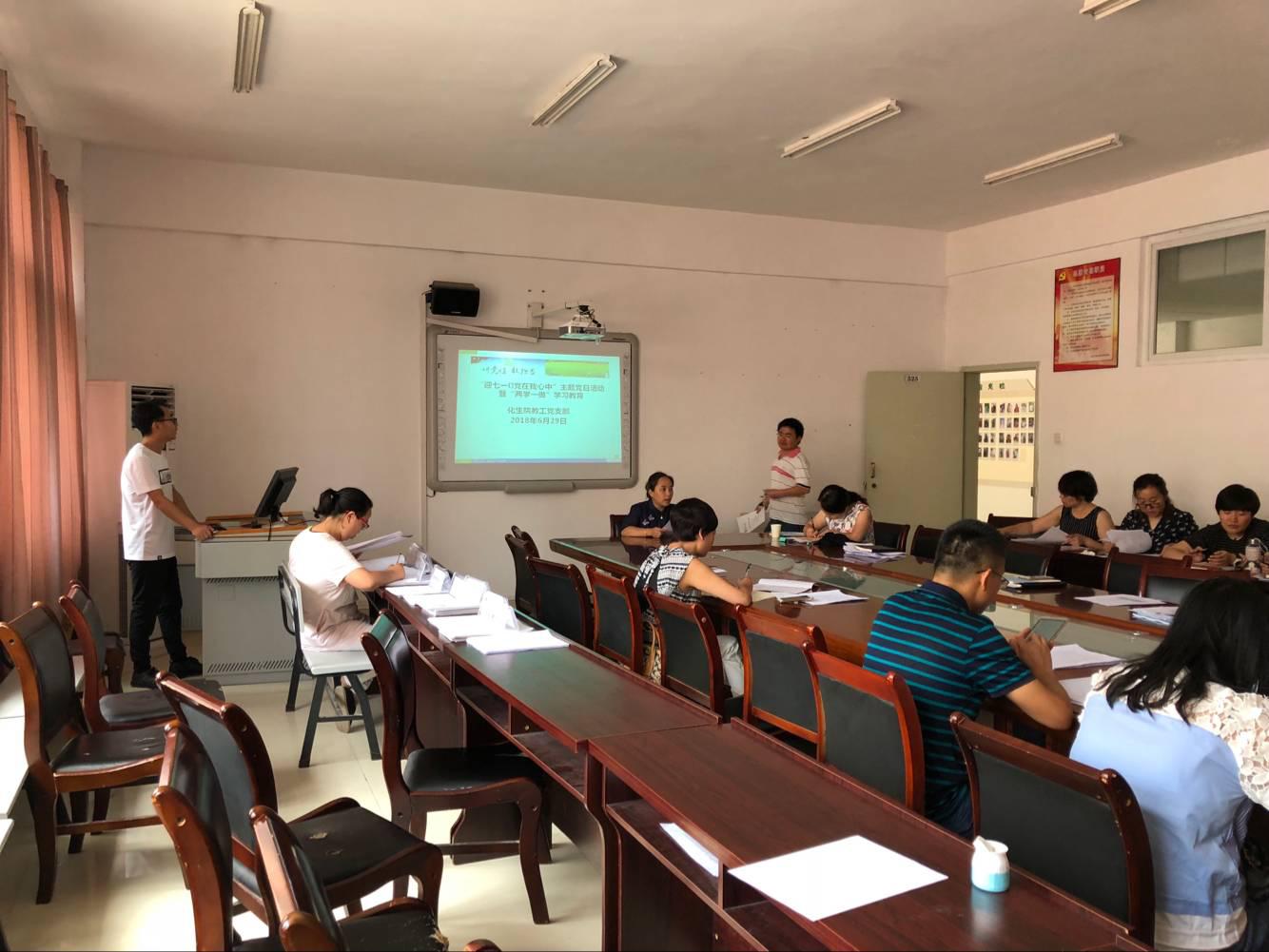 首先开展了“重温入党誓词”的教育活动。化生公司教工党支部书记杨燕讲述了“重温入党誓词”的重要意义,强调入党誓词是每一个共产党人向党和人民做出的庄严承诺,是共产党人的行动指南,是共产党员为实现自己人生最高价值所做出的无悔选择。接着,全体党员在教工党支部组织委员周玫老师的带领下,面对党旗,举起右手,再次发出铮铮誓言,表达了为党的事业奋斗终身的决心。紧接着开展了“迎七一·党在我心中”专题研讨,并组织全体党员教师观看电影《建党伟业》。