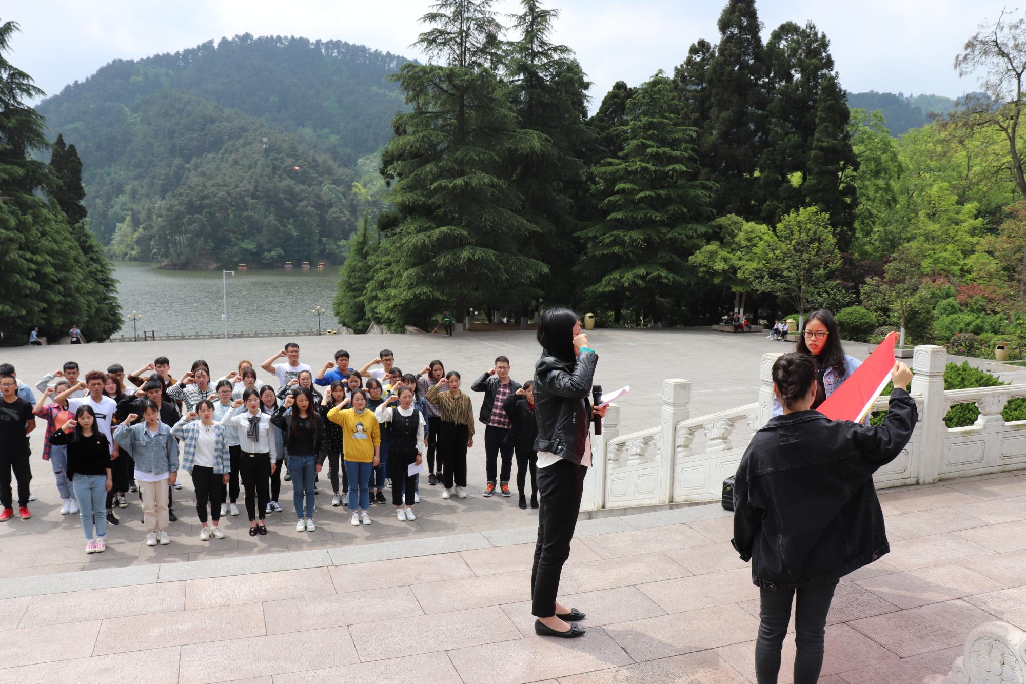 首先两位员工代表到解放贵州革命先烈永垂不朽纪念碑前敬献鲜花,全体默哀一分钟表达对革命先烈们的深切悼念之情。其次,李育芳老师带领同学们在纪念碑下重温入党誓词。员工代表吕建昕、丁运先后发言,表示作为员工的我们,要不断努力提高自身专业技能知识,在生活上、学习上、工作上不断地端正态度,提高自身的党性素养,要用信心、诚心、雄心去演绎我们精彩的人生,莫让年华付水流。教师代表王溯、梁涛先后致辞,并提出:“作为新时代里的新青年要珍惜和平的美好生活,要铭记历史,不忘先烈,秉承传统,牢记自身的使命,挥洒热血,奉献青春,为祖国的明天奉献力量。”活动结束后,全体成员在纪念碑下合影留念。