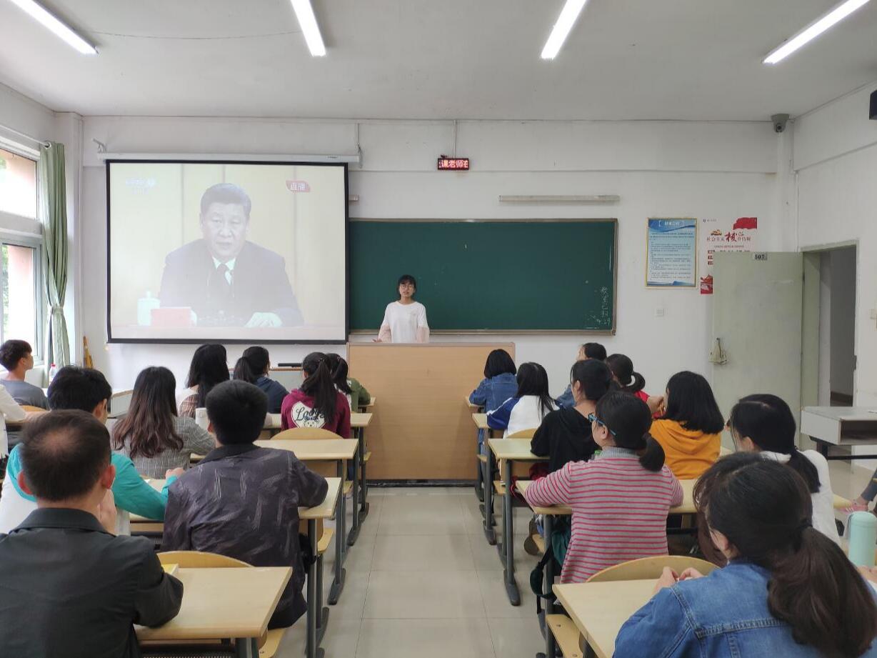 3生科院员工在致远楼507教室集体观看五四纪念大会