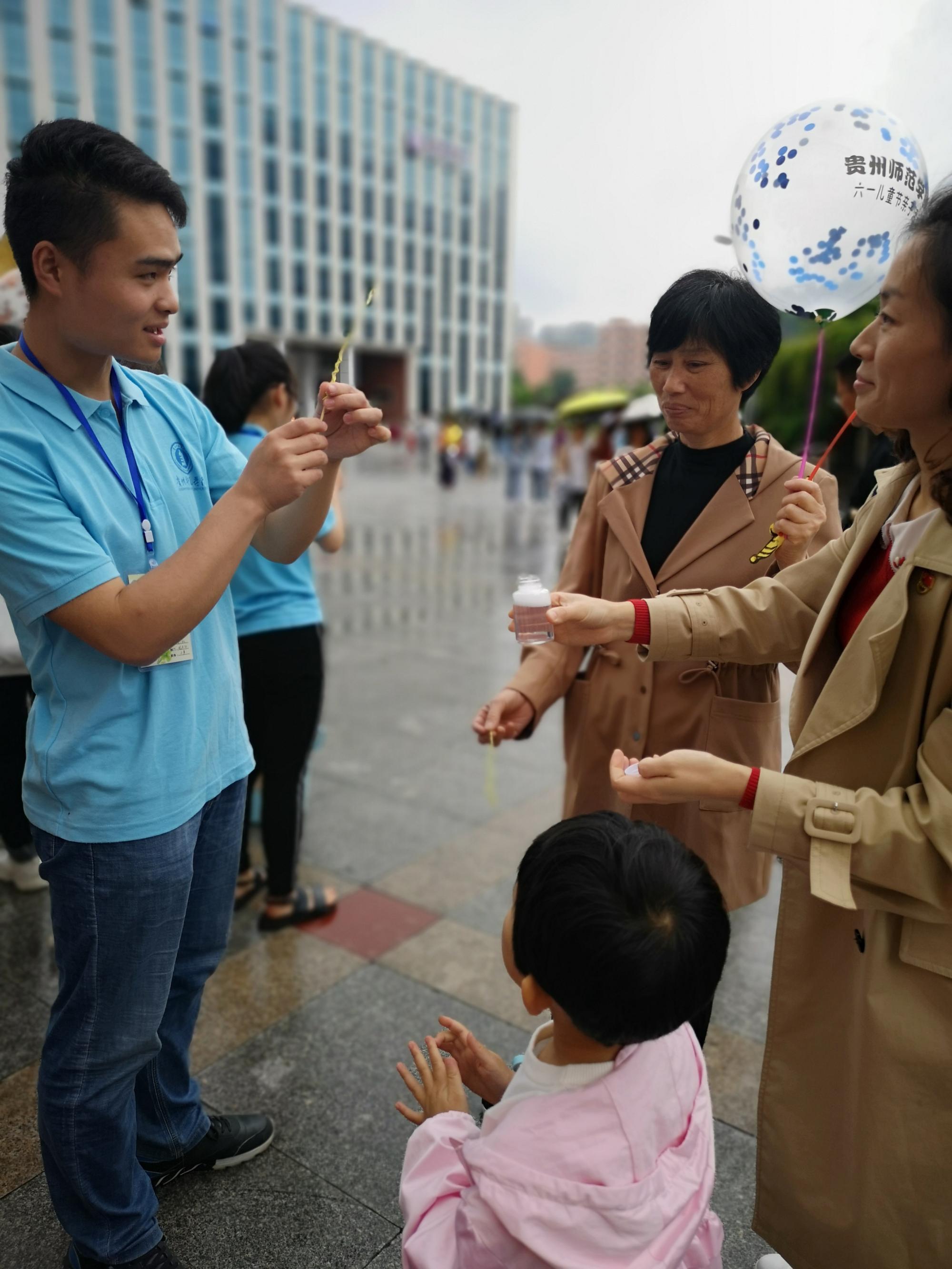 5月31日,威廉希尔校工会组织了六一儿童节活动,全校教职工近300个小家属一起庆祝过“六一”。为了让宝贝们在“六一”活动里玩的更开心,威廉williamhill体育工会协办了一个亲子泡泡活动。此次活动由威廉williamhill体育绿蚁社的同学们负责维持泡泡活动的次序和孩子们的安全。