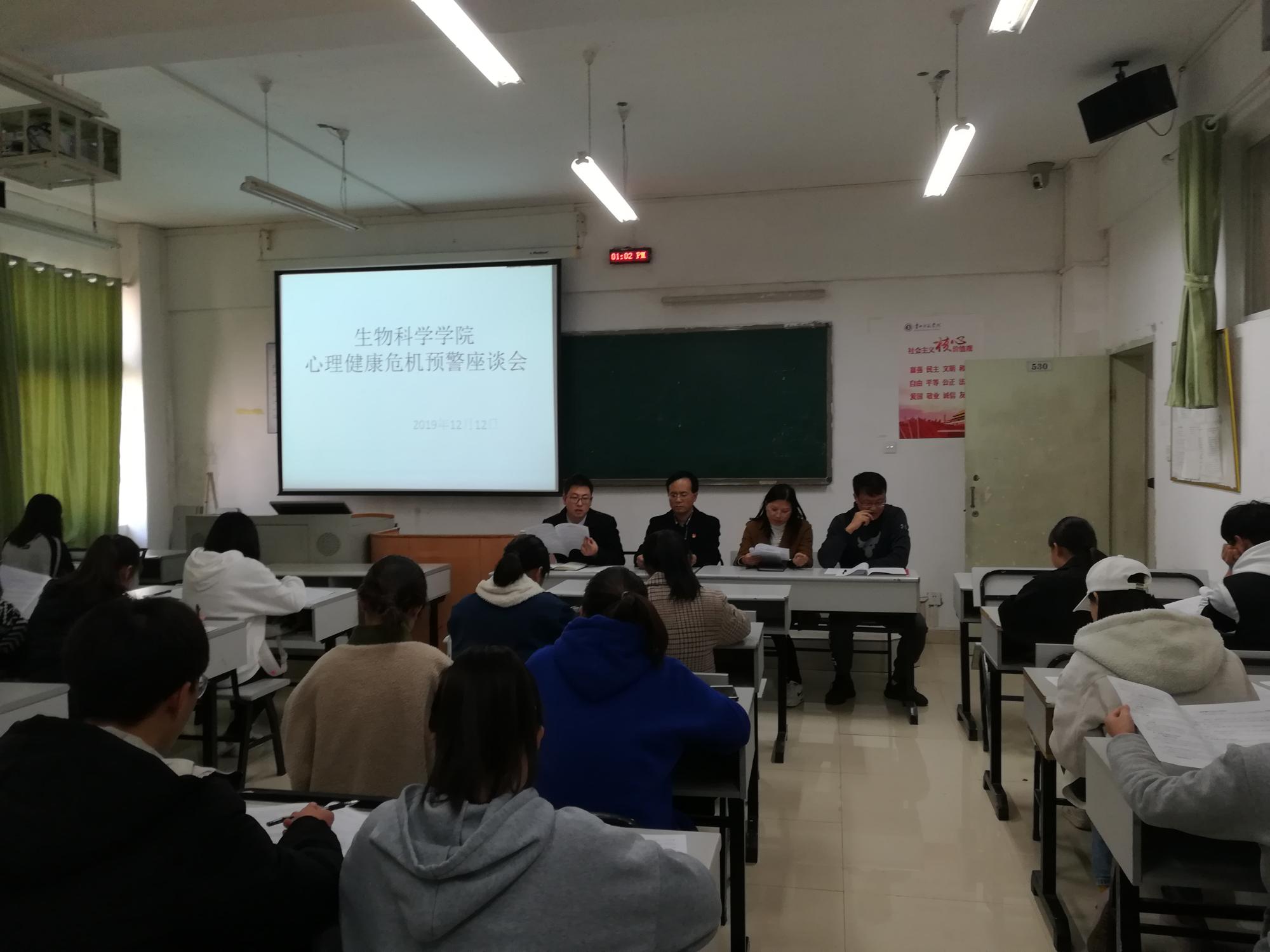 12月12日中午,威廉williamhill体育在宁静楼530教室召开了威廉williamhill体育员工心理健康危机预警处置方案座谈会。公司党总支副书记孙秀华、团委书记梁涛、辅导员李育芳和程搏幸,以及各班级班长、团支书、心理委员参加了会议。