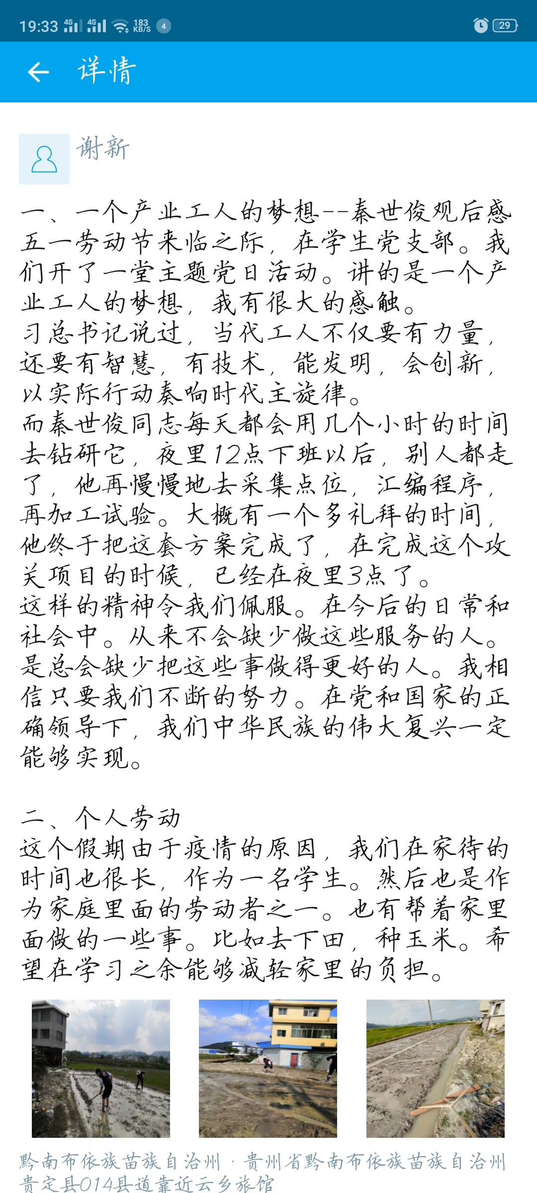 本次活动放映的是《开讲啦》之 “一个产业工人的梦想”的劳动教育视频。影片讲述了全国五一劳动奖章获得者秦世俊为工作奉献一生,讲述了他从接触到一个非常普通的岗位到慢慢接受并热爱专研于其中,为国家的航空领域做出了杰出贡献。观看期间,同学们都静静的观看,深深被秦世俊为工作无私奉献的精神所感动。视频结束后,同学们纷纷在易班平台发表个人心得,表示我们要始终弘扬劳模精神、劳动精神、工匠精神,为疫情过后的复工复产汇聚强大正能量,并积极参与家里的各类劳动。