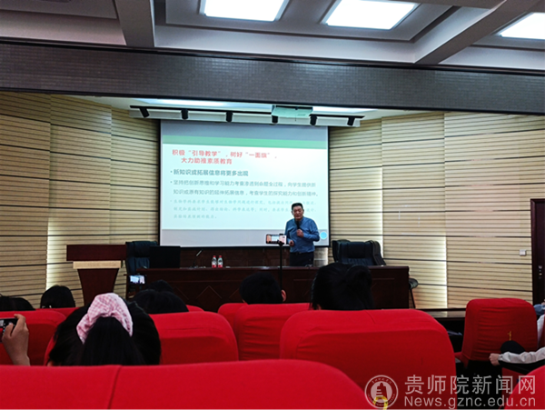 4月23日下午,贵州省名师工作室主持人、贵阳市第二中学冷枫董事长对2018级生物科学班的同学开展了“生物新课标引领高考生物学科教学改革”专题讲座。