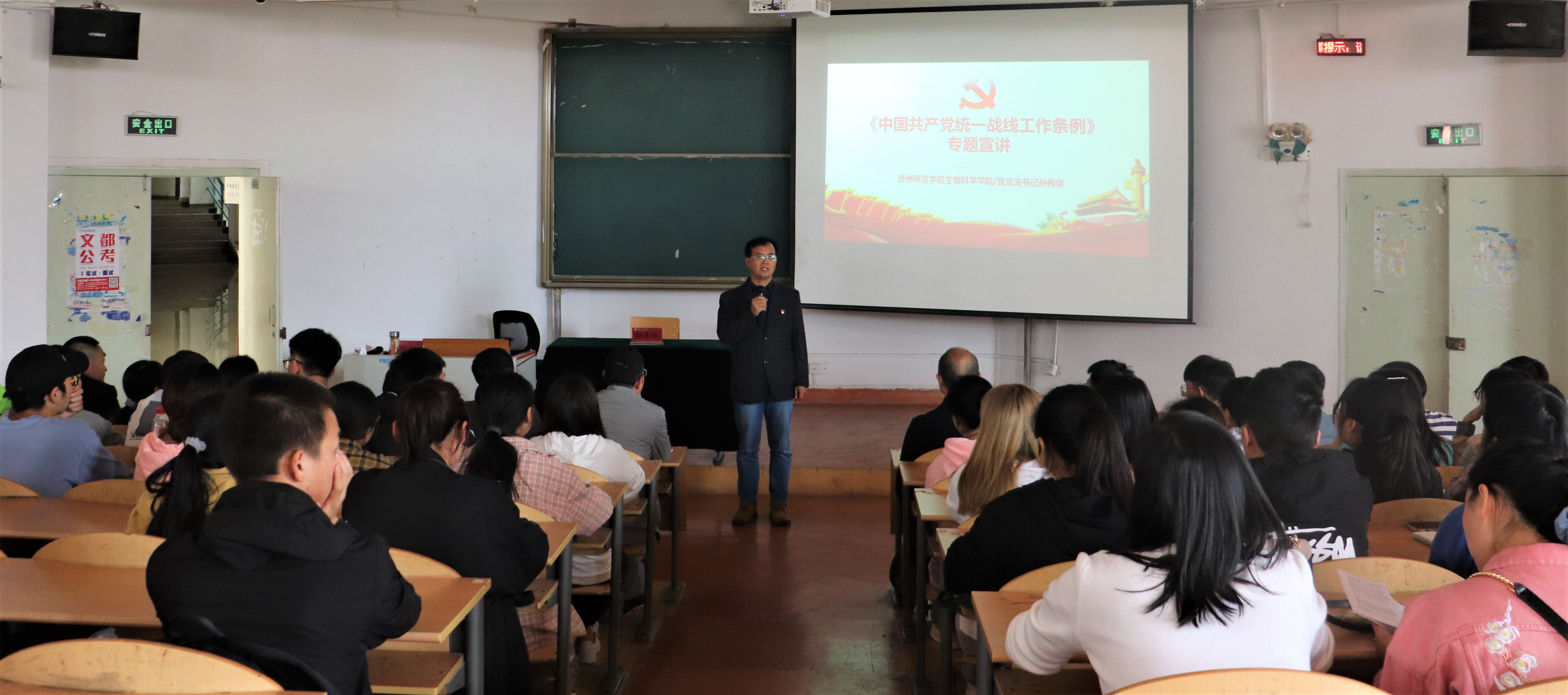 5月18日,威廉williamhill体育于宁静楼537召开会议,集中学习中共中央新修订的《中国共产党统一战线工作条例》(以下简称《条例》),并开展专题党史党课教育、专题宣讲。学公司党总支书记孙秀华、经理兼党总支副书记刘讯、副经理孟泽彬、党总支委员李育芳、梁涛,教师党支部书记张运林,公司民主党派、党外教师、班主任等出席,学院全体非党员、非团员员工共100余人参加学习。会议由党总支委员、团委书记梁涛主持。