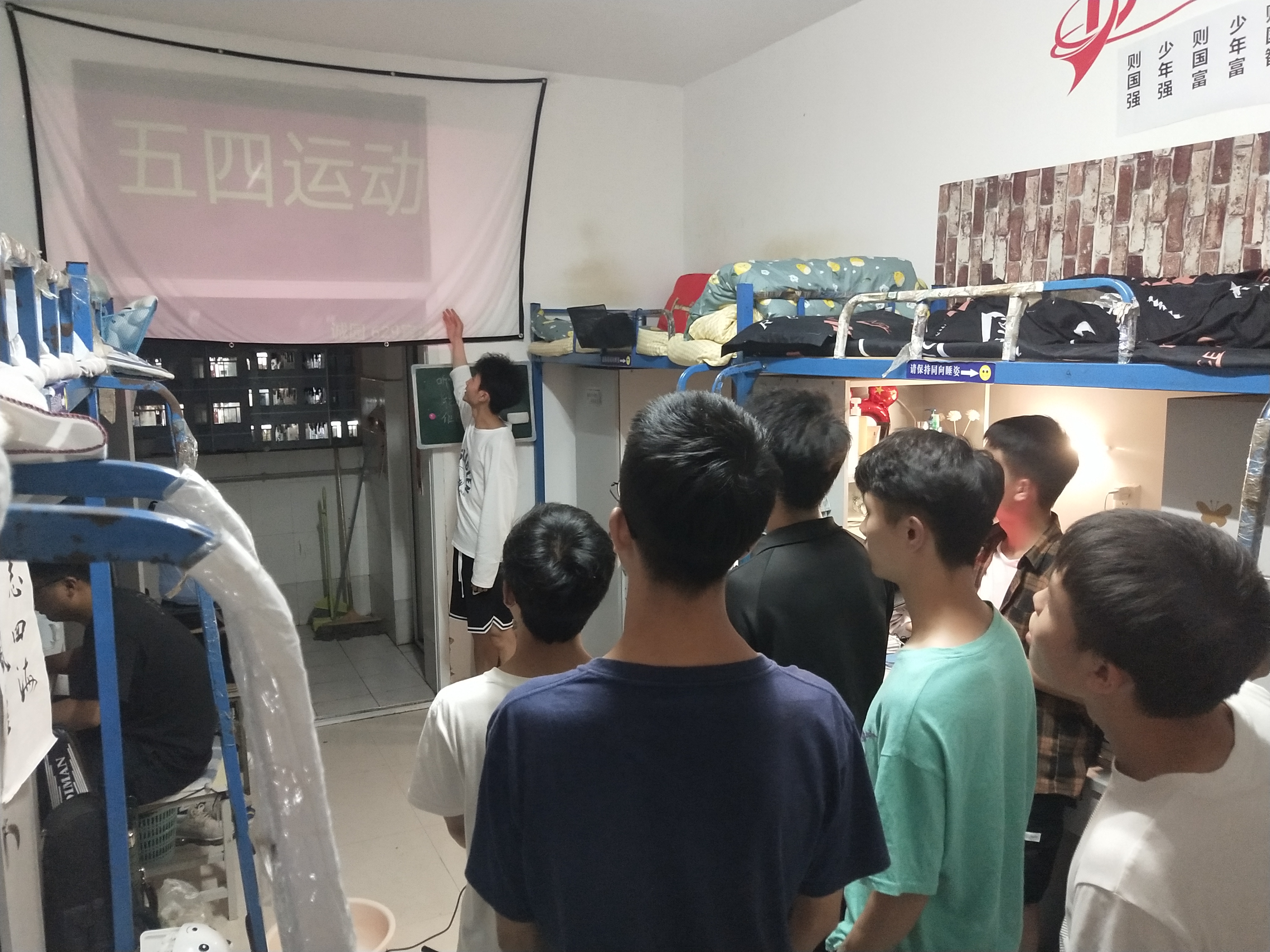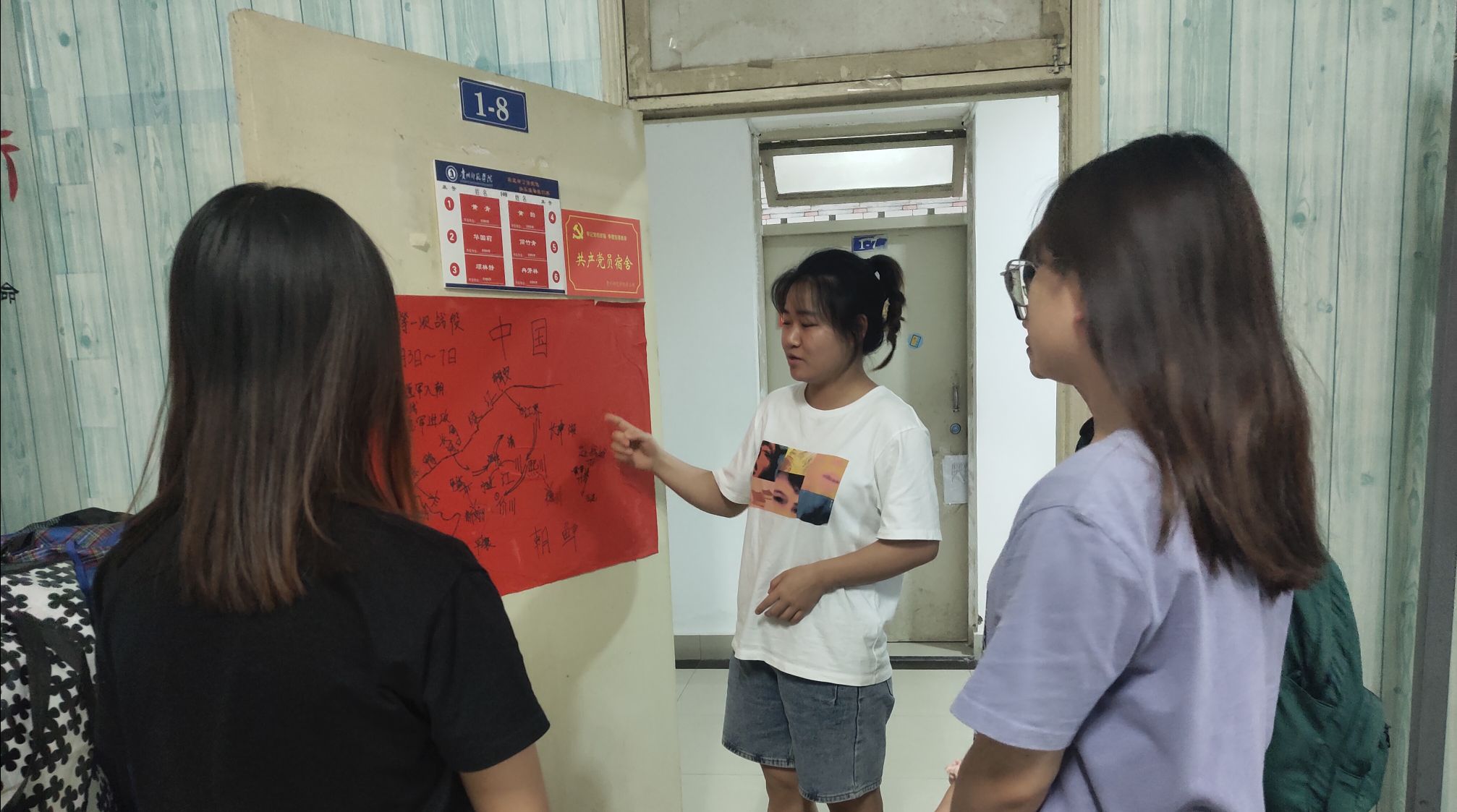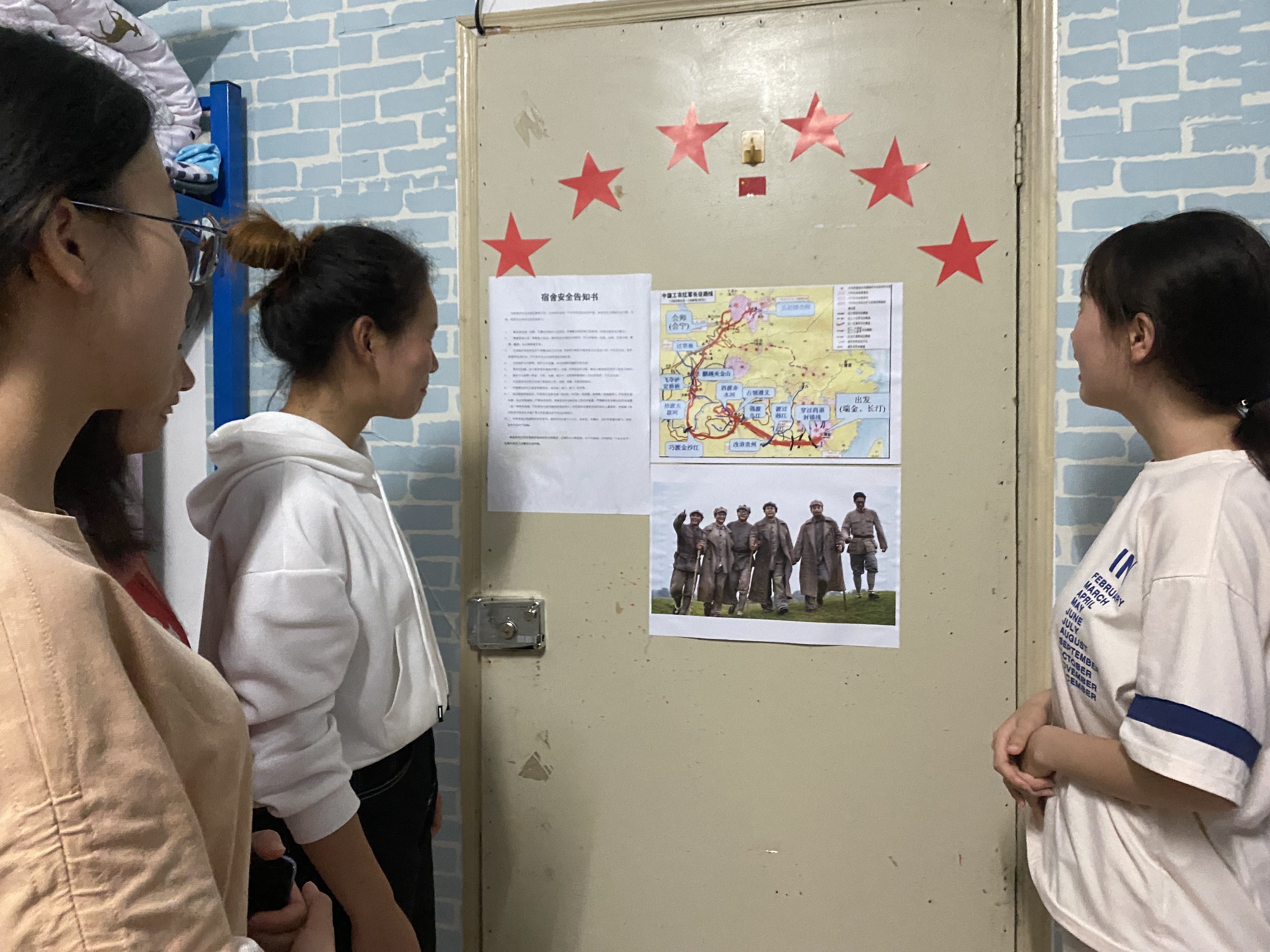 第二周活动,14间示范寝室结合本寝室的红色方文化建设主题,完成了对15间普通寝室的党史宣讲,以“长征精神”、“五四运动”、“回顾党的发展历程”、“传承贵州红色文化”、“抗美援朝”、“延安精神”、“党恩浩荡,春意盎然”、“百年征程名英雄——邱少云”、“刘胡兰精神”等为宣讲主题,内容丰富,寓意深刻。进一步加强了同学们对党的了解,培养了同学们自觉进行党史学习的良好习惯,增强了同学们的党性修养和寝室党性学习氛围。