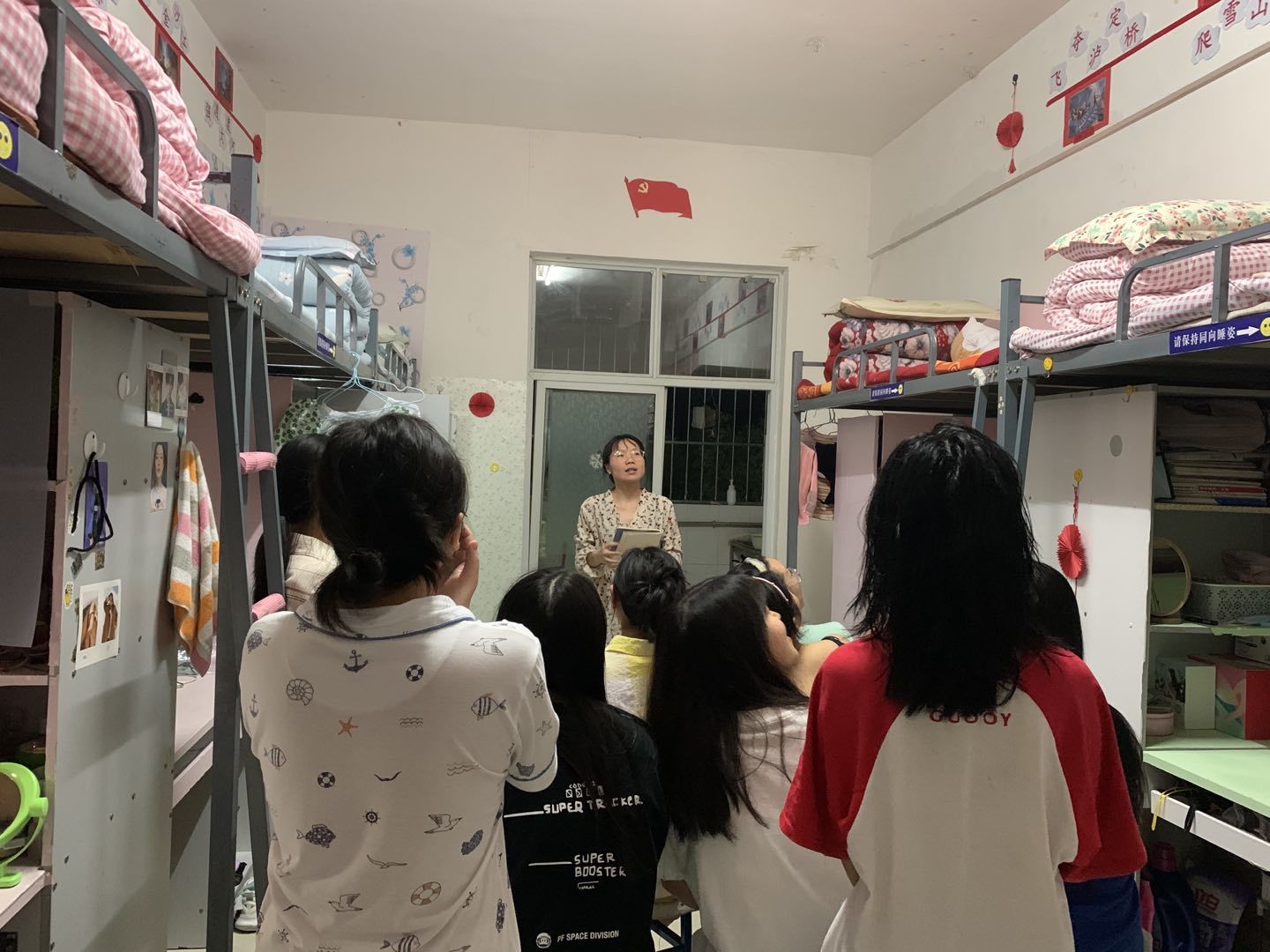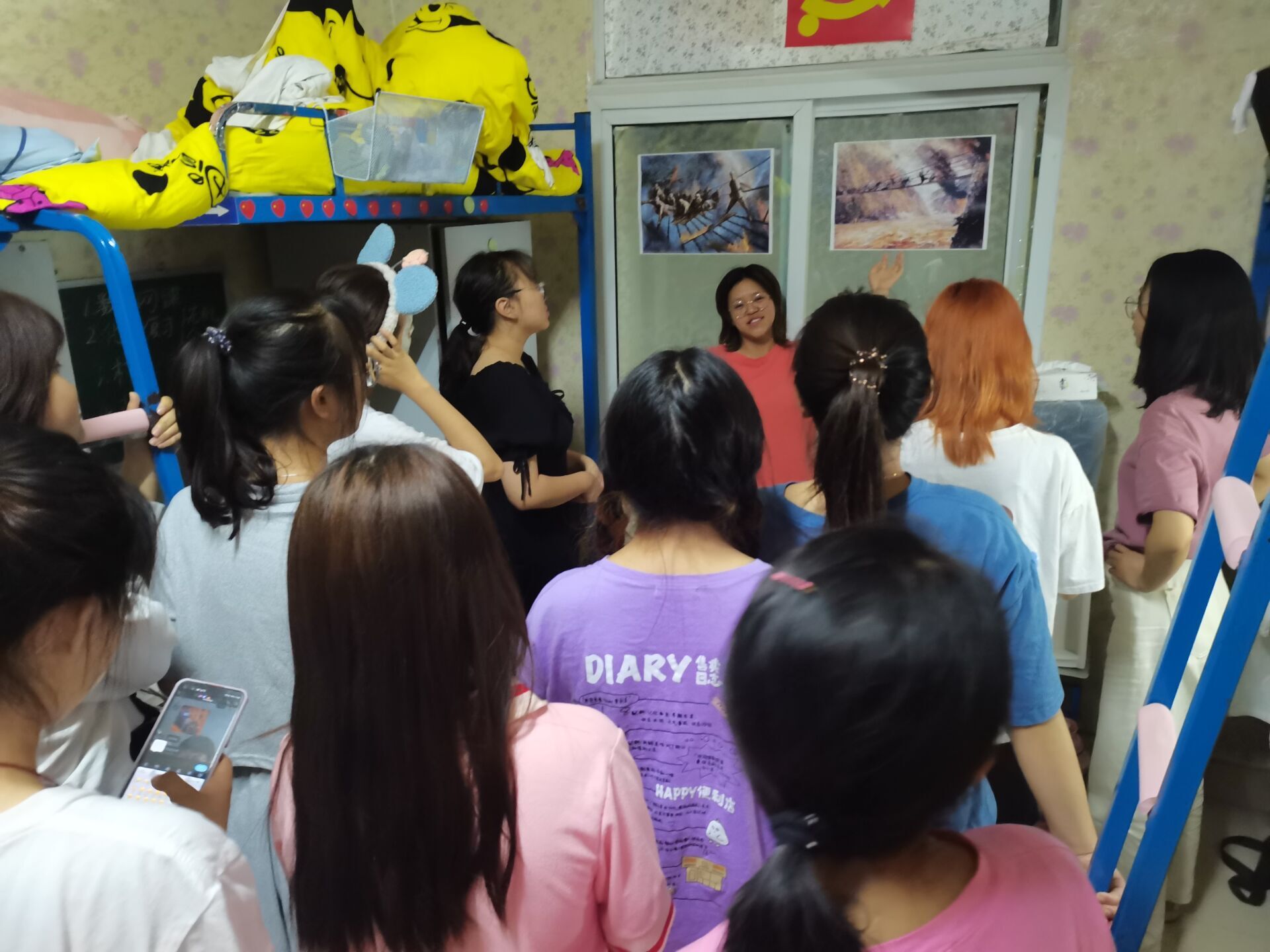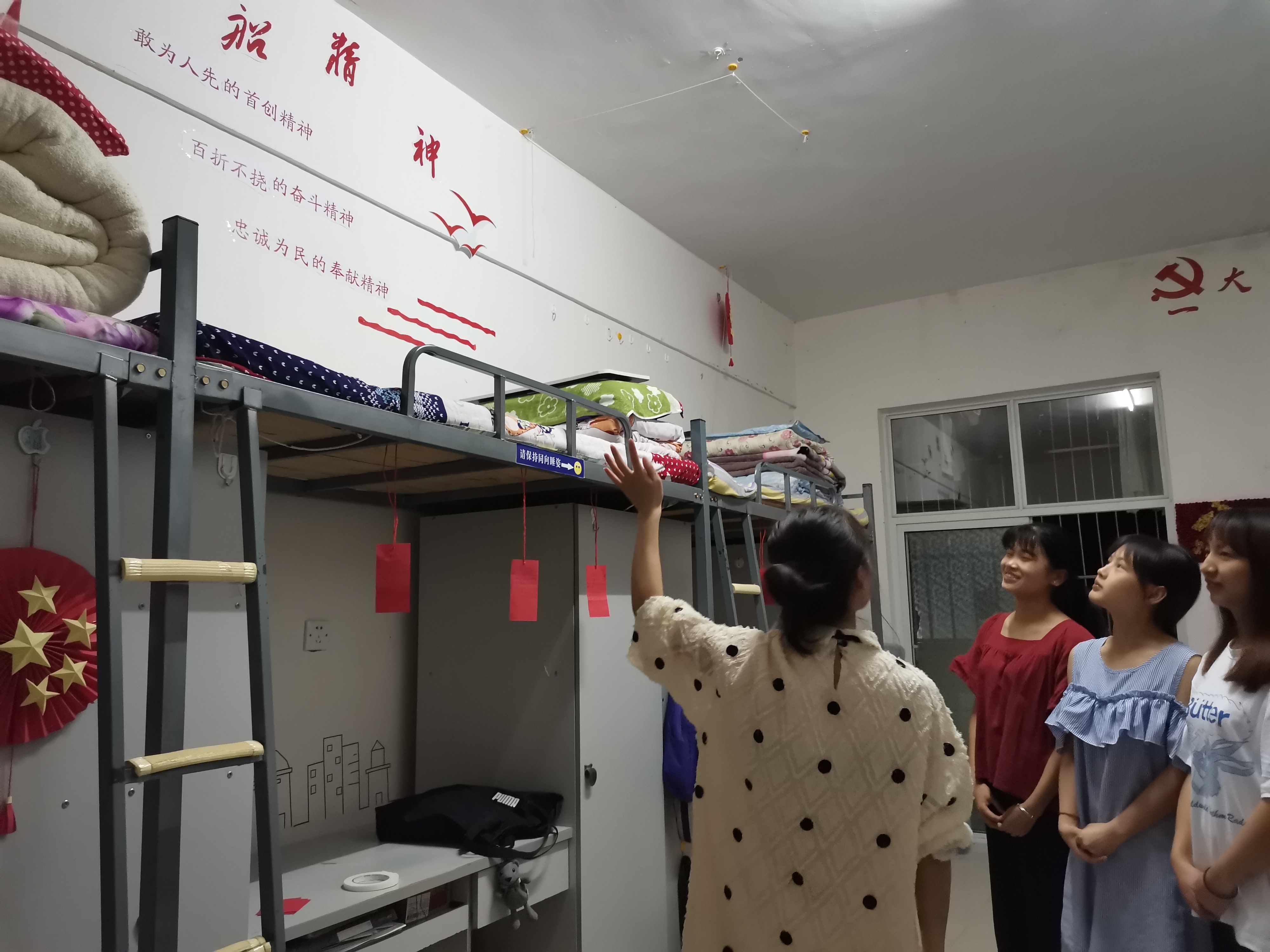第二周活动,14间示范寝室结合本寝室的红色方文化建设主题,完成了对15间普通寝室的党史宣讲,以“长征精神”、“五四运动”、“回顾党的发展历程”、“传承贵州红色文化”、“抗美援朝”、“延安精神”、“党恩浩荡,春意盎然”、“百年征程名英雄——邱少云”、“刘胡兰精神”等为宣讲主题,内容丰富,寓意深刻。进一步加强了同学们对党的了解,培养了同学们自觉进行党史学习的良好习惯,增强了同学们的党性修养和寝室党性学习氛围。