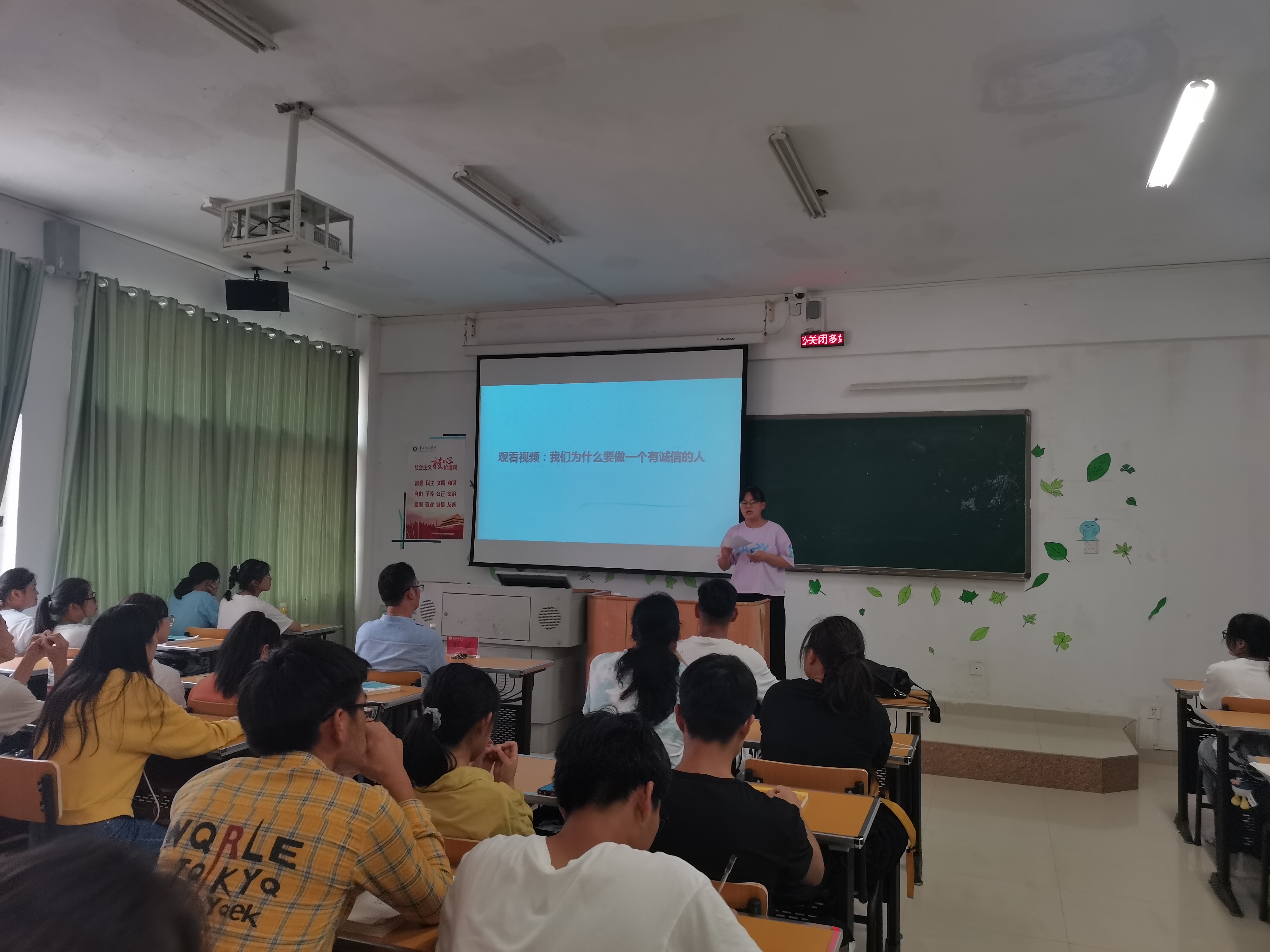 会议伊始,张婉玲介绍出席本次主题班会的领导及参与人员。接着,以观看中国政法大学教授罗翔的《我们到底为什么要做一个诚信的人》视频引出:一个人的可贵,在于他是个诚信和负责的人。紧接着,田璐、段炼、王浪三名同学分别分享了他们身边的诚信小故事,同学们精彩的分享让我们对诚信有了新的认识,并认为诚信是攀登人生主峰的阶梯,它能将人托举到更高的平台。随后刘讯经理给同学们上了一堂精彩的班会课,他表示:诚信在社会主义核心价值观24个字里的个人层面占据一个重要位置,是社会主义道德建设的一个重要内容,诚信不仅是为人之本,更是师范生必须要具备的一个品质。并强调教师是知识的传播者,如果教师不诚信,那么将无法使员工信服。刘讯的讲话让同学们受益匪浅。最后由班长赵超带领全体同学宣誓,我们身为师范生要做到诚信做人诚信做事,以真诚之行,扬信义之名。