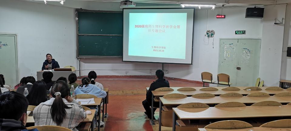 10月19日20点30分,2020级应用生物科学班员工学业帮扶会议在宁静楼537开展,出席会议的有学院经理刘讯、副经理钱长江,参与人员有2020级应用生物科学班全体同学。