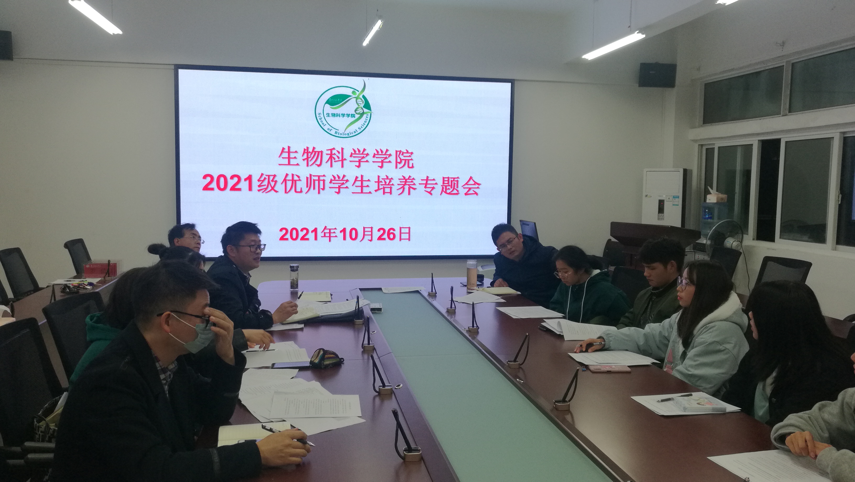 为提高2021级生物科学专业优师员工的培养质量,帮助员工规划老员工活,明确发展目标,10月26日晚,生物科学公司党总支书记孙秀华、经理刘讯、副经理钱长江、生物科学系主任武燕、教学科研科科长吴超、2021级生物科学专业的班主任梁涛和赵月梅老师及2021级生科专业的优师员工10人在宁静楼611召开优师员工培养专题会,会议由副经理钱长江教授主持。