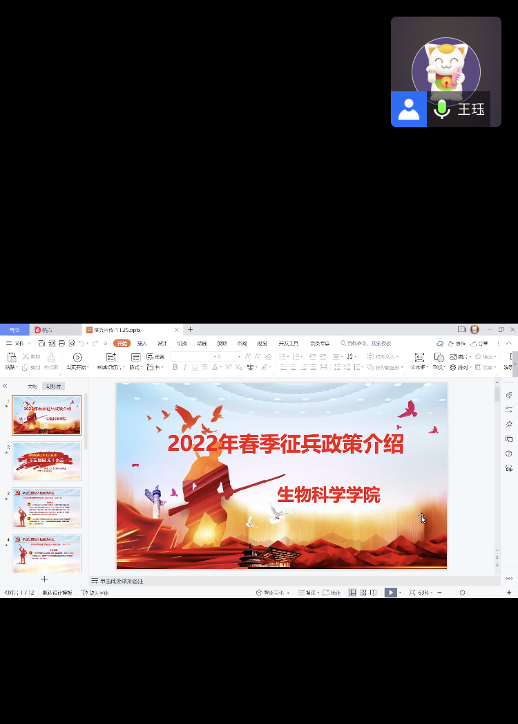 为激发青年员工参军入伍热情,做好公司2022年春季老员工征兵工作,帮助员工了解、掌握应征入伍的相关政策,11月26日中午,威廉williamhill体育在线上召开2022年春季征兵宣讲动员会。公司党总支书记孙秀华、副书记王珏、毕业班辅导员李育芳、班主任武燕、程博幸以及毕业班全体男员工参加了此次会议。本次活动由公司征兵联络员王溯老师主持。