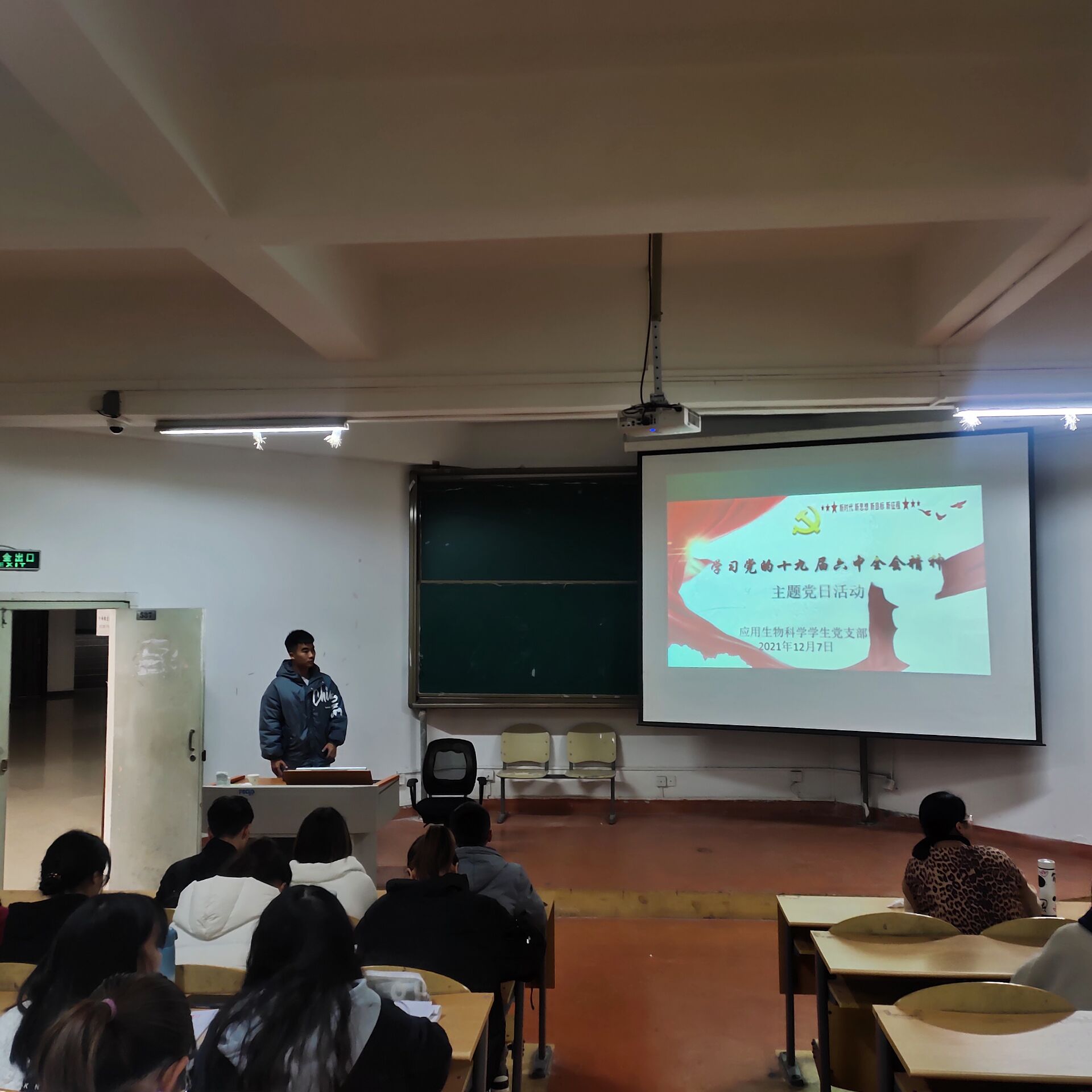 为深入学习贯彻中国共产党第十九届中央委员会第六次全体会议的重要精神,认真理解和把握党的百年奋斗所取得的重大成就和历史经验,12月7日,威廉williamhill体育应用生物科学员工党支部于宁静楼537室由应生党支部刘家宏主持开展“学习十九届六中全会精神”主题党日活动。参与本次活动的有应用生物科学专业员工党支部书记、全体正式党员、预备党员、入党积极分子。