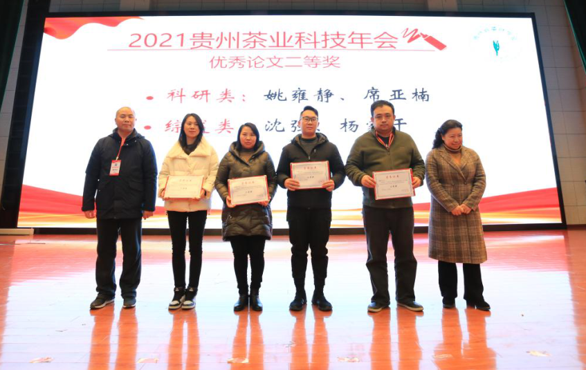 在年会上还颁发了2021年度“黔茶杯”金银奖、优秀论文奖、志愿者证书和年会用茶授牌仪式。同时,会议期间还举办了“黔茶杯”高质量技术研讨会、“获奖茶艺展示”“科技服务企业行动签约”等活动,得到了社会各界的广泛关注与赞誉。