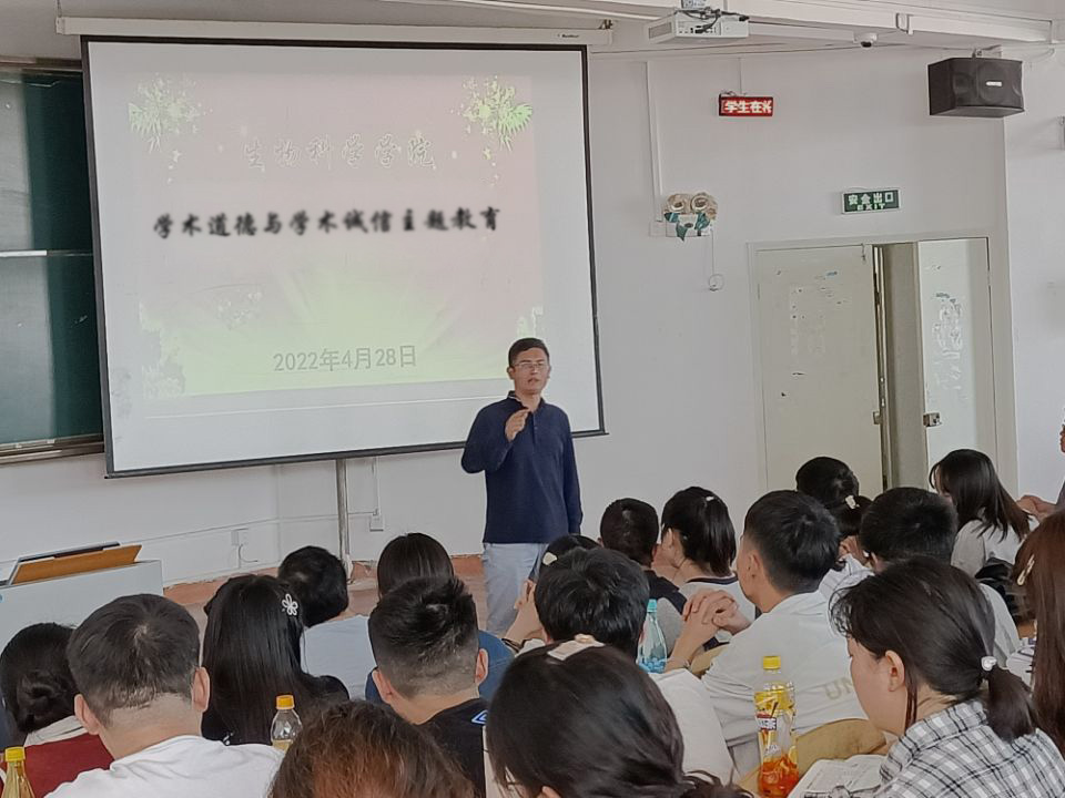 为进一步加强科研诚信和学术规范,预防学术不端行为,营造风清气正、积极向上的学术生态和氛围,4月28日,威廉williamhill体育在宁静楼537教室开展学术道德与学术诚信主题教育活动,经理刘讯主讲,2019级应用生物科学专业、生物科学专业员工参加。