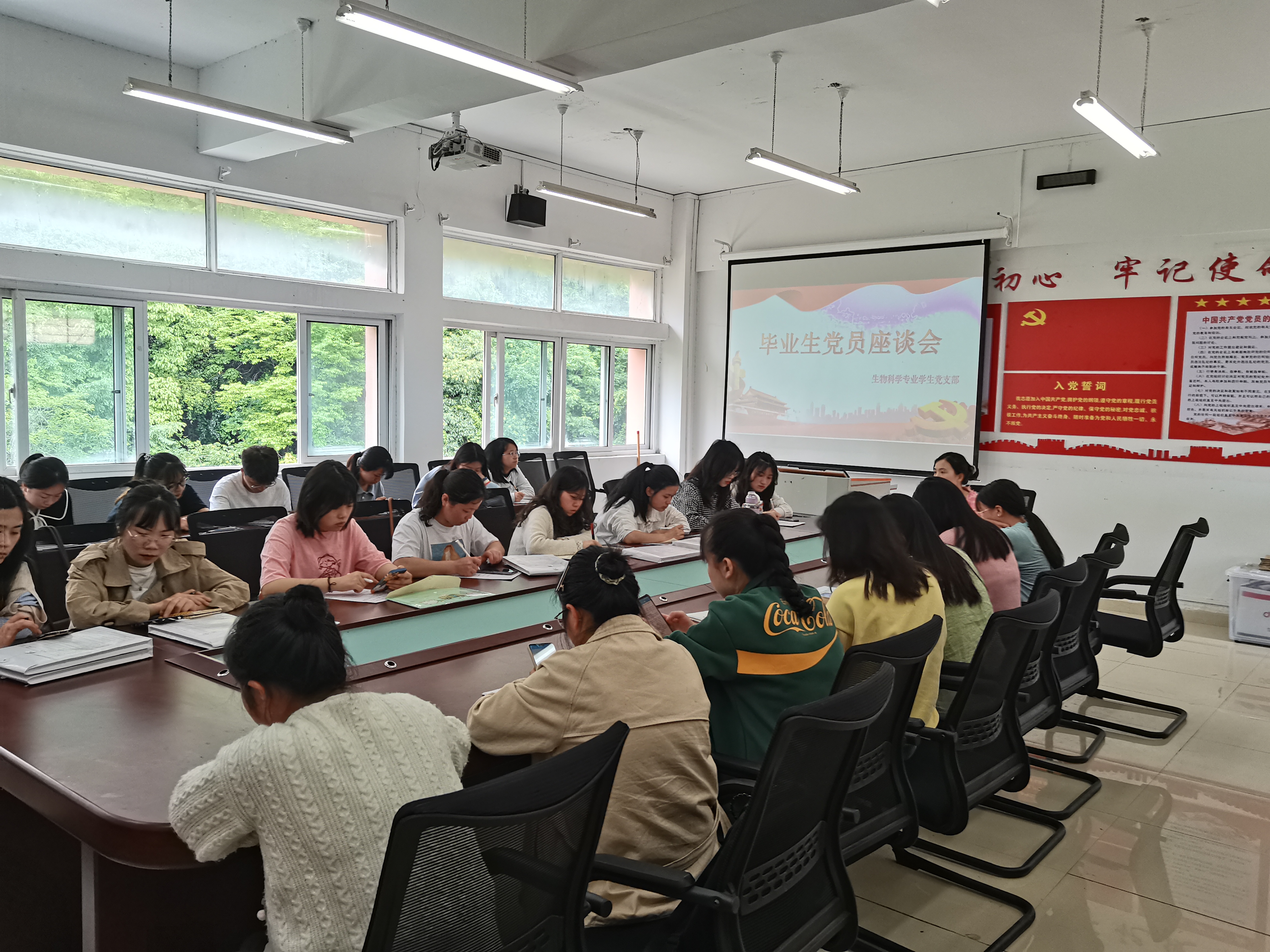 为进一步提升员工支部党员发展质量、教育管理机制,帮助毕业生党员解答毕业困惑,5月7日,生物科学专业党支部在宁静楼608党员活动室召开了毕业生党员座谈会。员工党支部书记王溯主持本次座谈会。员工党支部全体毕业生党员参加了此次座谈会。
