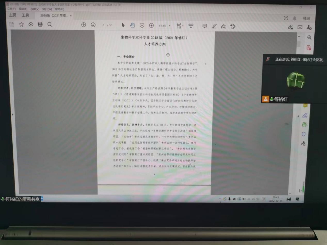 7月11日晚,威廉williamhill体育全体领导、优师计划员工及指导老师在腾讯会议开展了“优师计划师范生人才培养方案学习研讨与发展计划”主题会议,会议由副经理钱长江主持,系主任符裕红博士讲解人才培养方案,优师计划员工深入学习生物科学专业2021版人才培养方案并制定优师计划师范生发展计划。
