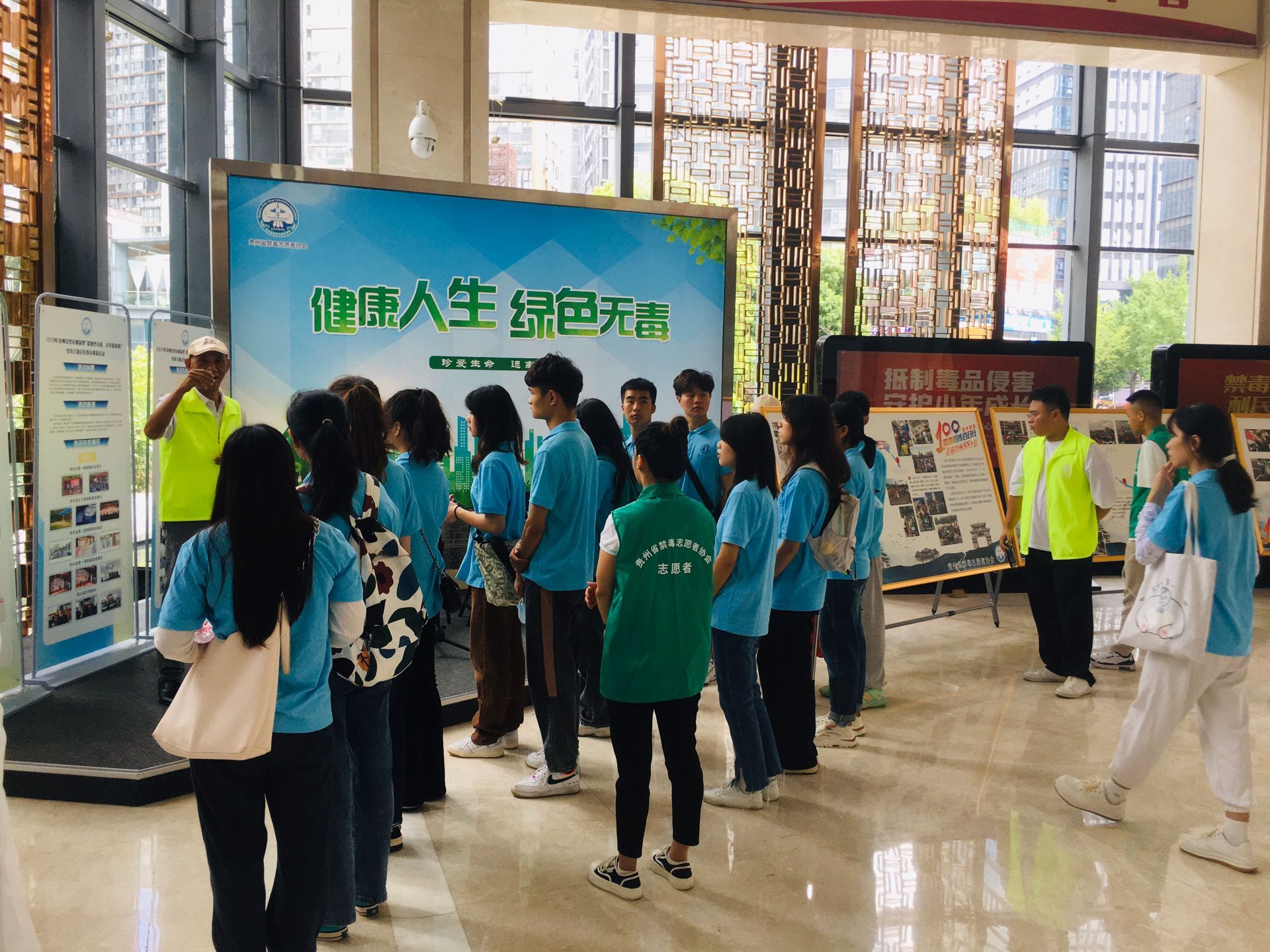 参观活动现场,首先由李明黔老师组织带领同学们参观贵州省禁毒志愿者协会,参观内容分为四个板块,李老师采用了边参观边讲解的方式。一开始,李老师讲述了多名之前吸食过毒品但在戒毒成功后通过自己的努力,为社会做出贡献、回报社会,有“禁毒”英雄邵海鹏、贵州省改之文化艺术有限公司负责人严于海、湄潭县爱心公益协会会长陈进等,李老师通过讲解他们的真实经历让同学们更深程度知道了吸食毒品后的危害不仅仅只是网络上骨瘦如柴、精神恍惚,还有除了耳朵以外的器官都在流水,甚至大小便失禁;接下来李老师对检测毒品方法进行讲解,并让同学们认识相关器具,如尿检、发检、污水检测、易制毒化学品现场检测箱等;第三个环节是参观他们禁毒协会最近半年内到贵州省各个地方开展禁毒活动的海报,李老师采用图文并茂的方式生动形象的讲述了这些活动的大概过程及意义,同学们也因此更加了解了禁毒活动相关内容;在最后,李老师带领同学们参观了他们禁毒协会在贵州省的分布站点。