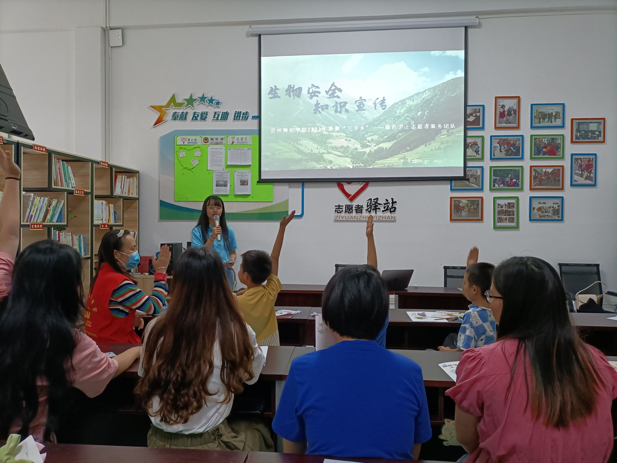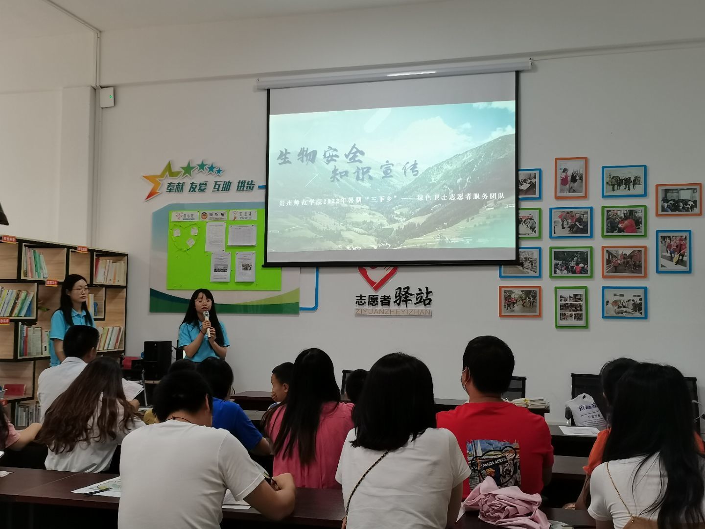 7月21日,威廉williamhill体育绿卫士团队在贵阳市乌当区新光居民委员会志愿者活动站组织召开三下乡新光社区生物知识宣讲活动,带队老师程搏幸及绿卫士团队全体队员参加,会议由团队队长赵颖和宣讲组组长计连连共同主持,共计三十余人参加活动。