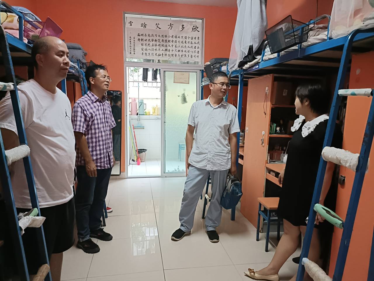 为及时了解员工返校情况,掌握员工思想动态,进一步贯彻寝室相关安全教育、疫情防御工作,生物科学公司党委书记孙秀华、经理刘讯、党委副书记王珏、副经理孟泽彬以及各年级辅导员于8月21日晚带领团委员工会部分成员开展寝室走访活动。