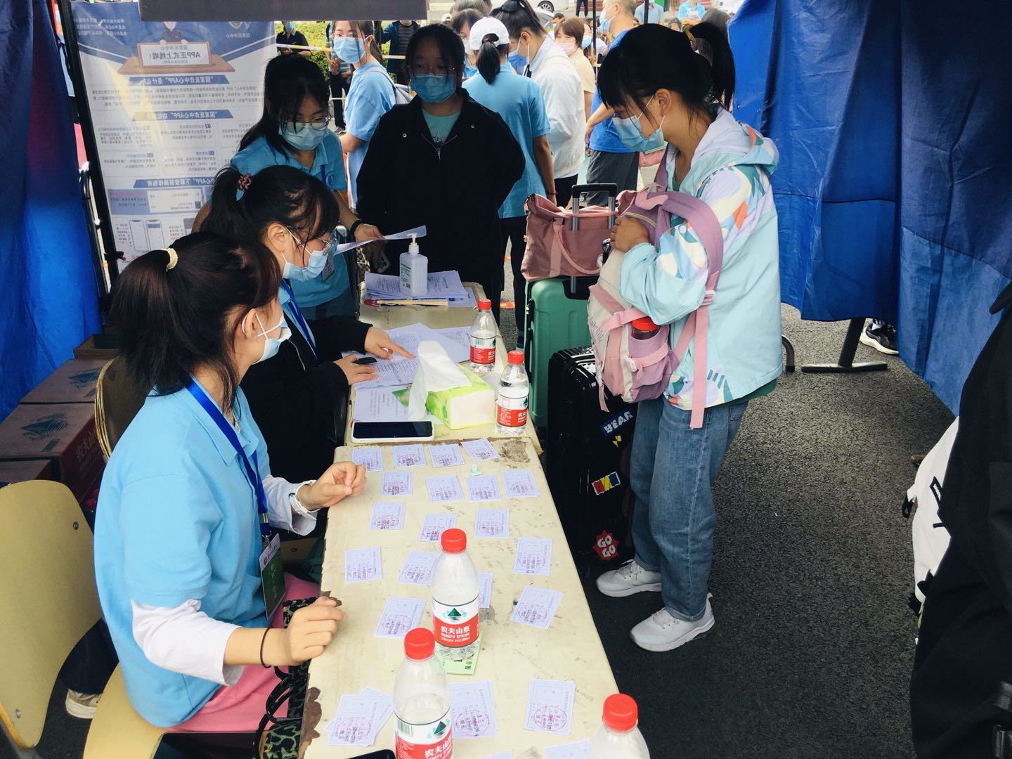 早上7:00,迎新工作者们带着准备已久的迎新物资,早早的做好迎新现场布置,以确保迎新工作顺利完成。新生到校后首先由志愿者带领至公司校门口的工作棚进行三码以及通知书的查验、进校登记并且领取住宿卡,然后跟随志愿者前往鉴湖工作棚进行签字登记、领取并激活一卡通,最后在志愿者的帮助下进入相应的寝室。在迎新过程,公司领导及老师亲为其中,给新生以深切关怀,同时,志愿者全过程不畏烈日为新生们搬运行李,以最饱满的精神和最温和的态度不断给新生答疑解惑引领报道,