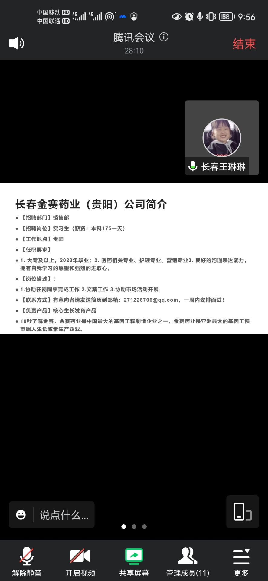 9月8日晚,威廉williamhill体育邀请长春金赛药业开展招聘宣讲。此次宣讲通过“腾讯会议”平台在线上进行。毕业班辅导员以及2023届毕业生参加了此次线上招聘会。