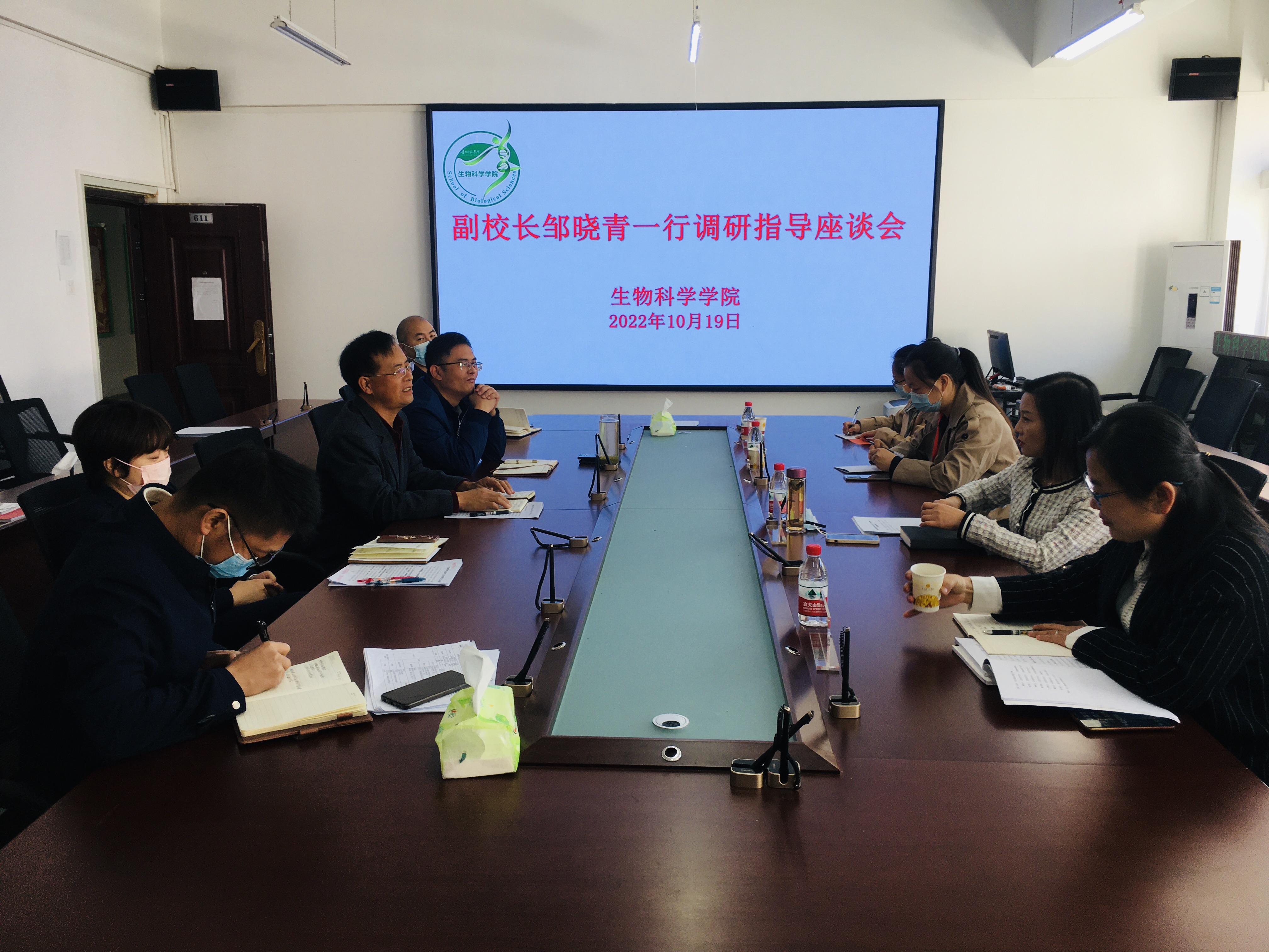 10月19日上午,公司党委委员、副董事长邹晓青一行到生物科学公司调研指导工作,监测与评估办公室主任任翠娟、教务处副处长聂冬梅、公司党政办公室高媛,生物科学公司领导班子、辅导员和行政人员参加了调研指导会议。