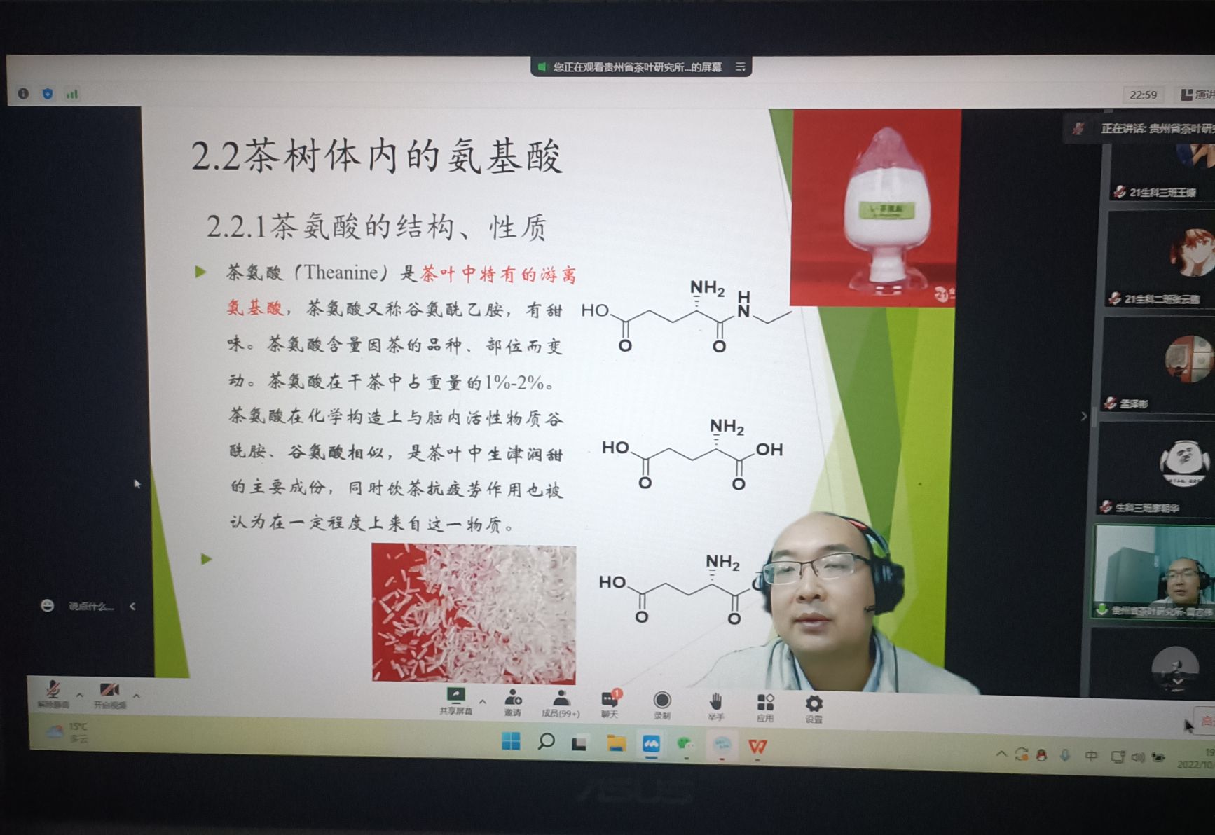 为营造良好的学术氛围,拓展学术领域,10月20日,威廉williamhill体育邀请贵州省农业科公司茶叶研究所雷志伟副研究员在公司线上开展“饮茶健康的物质基础”学术讲座。讲座由公司副经理孟泽彬教授主持,生物科学专业和应用生物学科学专业员工及部分老师参加讲座。