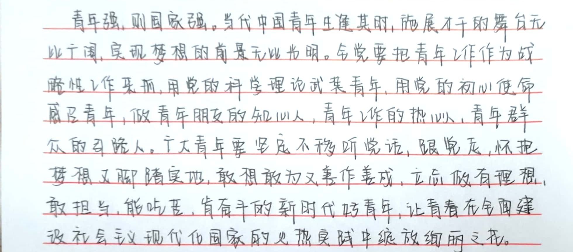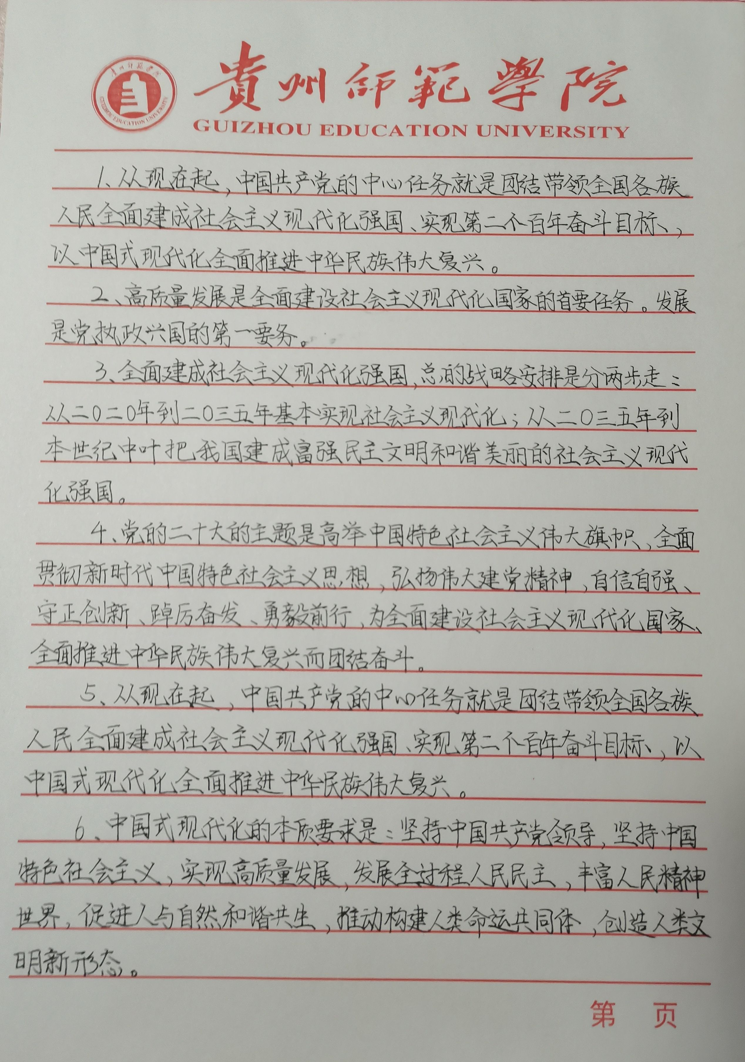 活动初始,谢倩向大家介绍了活动的主要内容,让大家更好的了解活动,进行活动。硬笔书法和毛笔是“三笔字”中的内容,是师范生未来作为教师的一项重要的基本功。白色的纸张,黑色的墨水,一撇一捺,收笔之间,力透纸背、端正秀气、舒展大方等一幅幅作品展现出来。有“党的二十大主题”“中国式现代化的本质要求”“中国式现代化是什么?”“中国共产党为什么行?”等内容,一句句闪耀着思想光芒的句子,意义深远,直抵人心。“一字一世界,一笔一精神。”每字每行都透露着大家对党的二十大报告的热情与领悟,振奋人心,发人深思,同时也展现了师范类高校的教师教育特色。