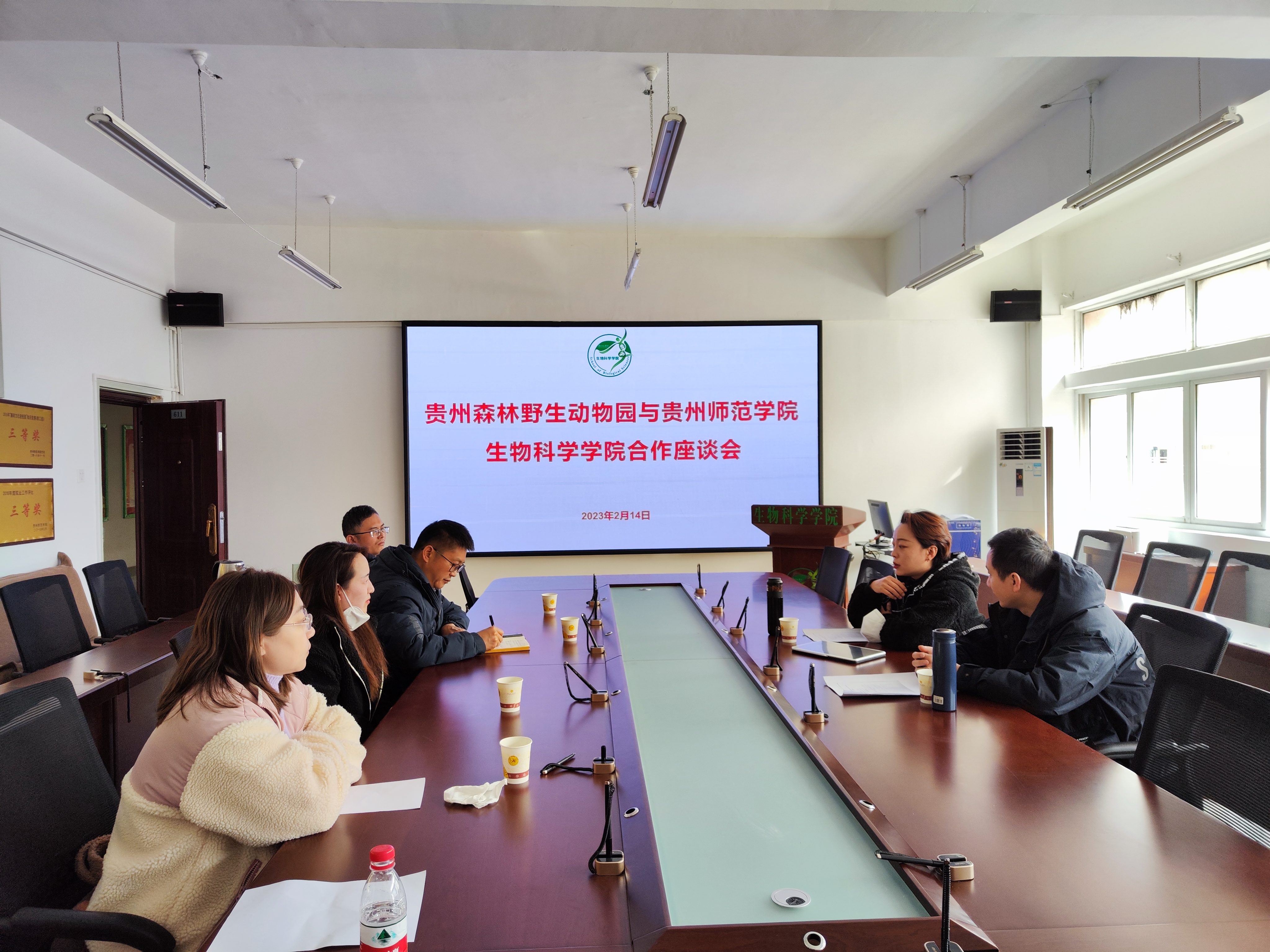 刘讯对张超一行表示热烈的欢迎,介绍了公司的基本情况,对专业发展、成果转化、科学研究等方面进行交流。钱长江就2023年贵州省森林野生动物园对实习生的人数需求及招聘工作人员计划与要求进行交流,孙悦博士、孙雪博士介绍了本年度的研究计划等。张超介绍了动物园的基本情况、研究资源、发展思路、未来设想以及人才需求等情况。张超表示,希望双方在科学研究、人才培养、实习实践、员工就业等方面的合作走深、走实。