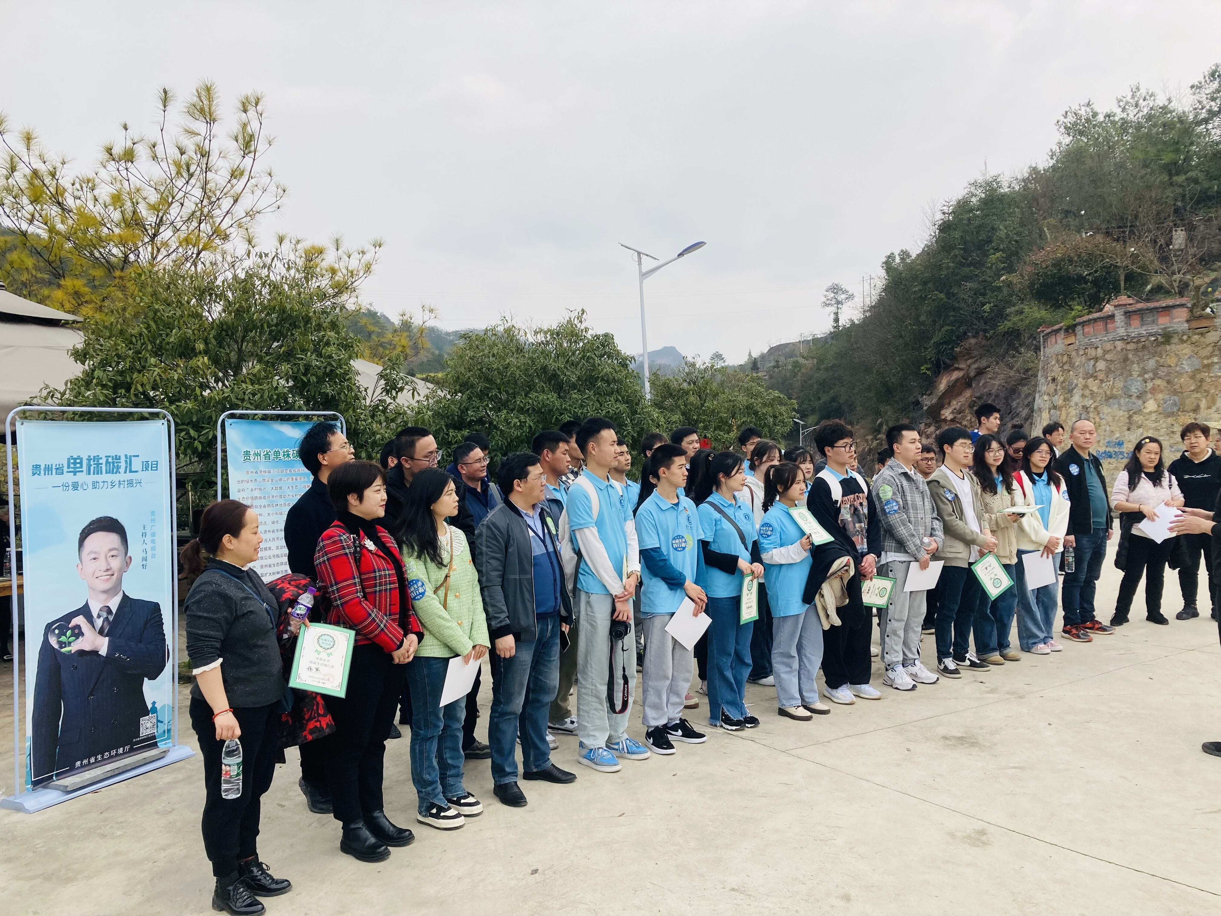 上午十点左右,所有人到达修文县天生桥村。植树之前,大家先参加了“低碳生活践行者”活动,通过两个低碳打卡活动环节,领取了“低碳生活践行者”证书。在参观期间,大家感叹大自然的鬼斧神工,同时也明白了保护环境的重要性。