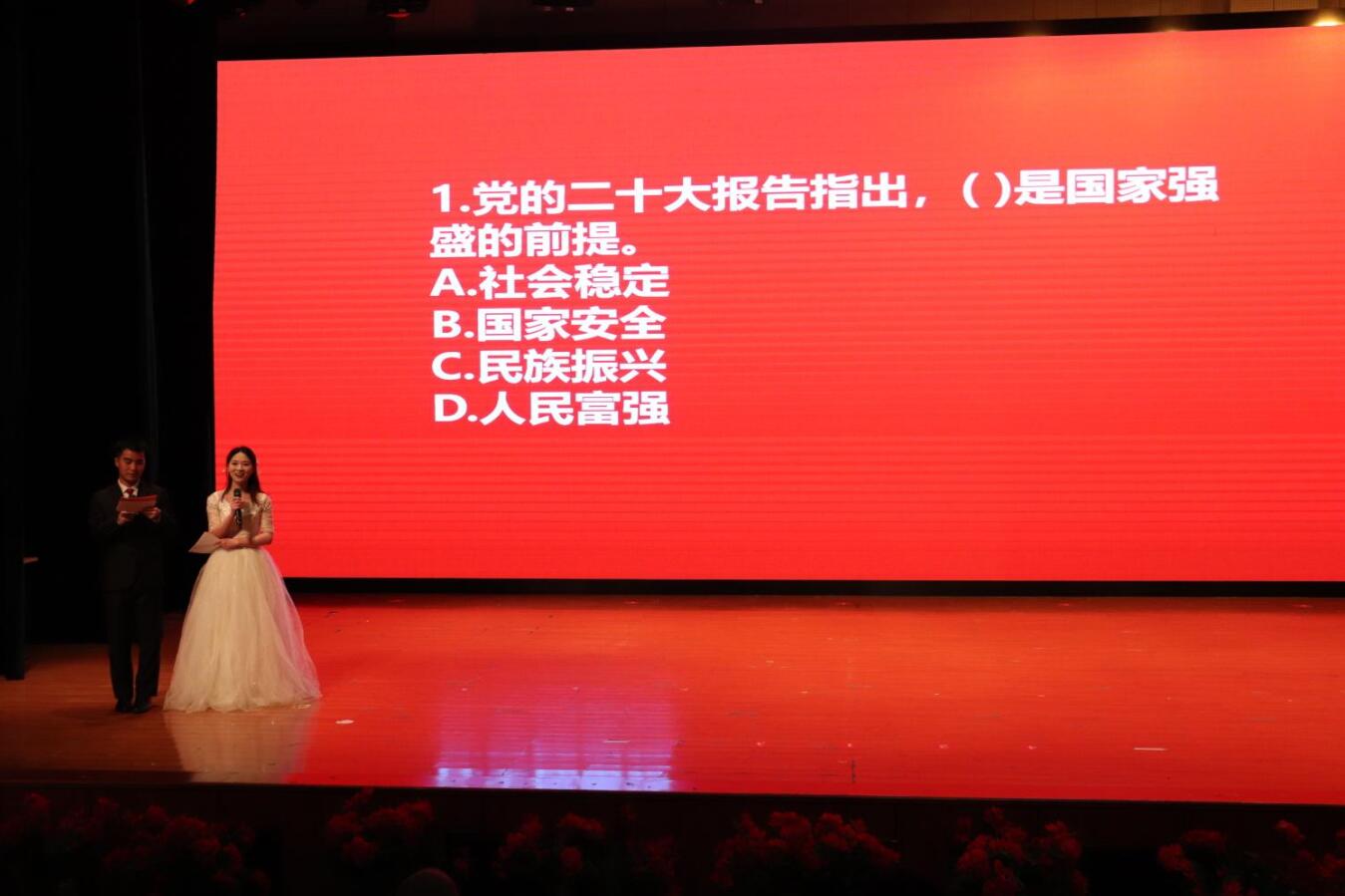 在氛围满满的开场舞之后,历史与档案公司党委书记吴靖霞、生物科学公司党委书记孙秀华分别对本次晚会致辞,对同学们表示欢迎,并对大家的未给予美好的祝愿。两支富有青春活力的舞蹈开场燃动现场,美轮美奂的古典剑舞让大家品味到了传统文化之美;生动形象的歌舞剧和以二十大为主题的小品,抒发了一代青年学子对党和国家的深沉热爱;类型多样的歌曲节目频频引起现场观众的合唱,同学们将拳拳爱国心倾注于歌声中。表演期间,还有关于二十大的提问环节,回答正确的同学还会获得礼品一份,这也将晚会推向高潮。彩色的荧光棒斑驳陆离,晚会现场气氛活跃,充分展现了丰富多彩的校园文化生活,激励新生探索老员工活的无限精彩。