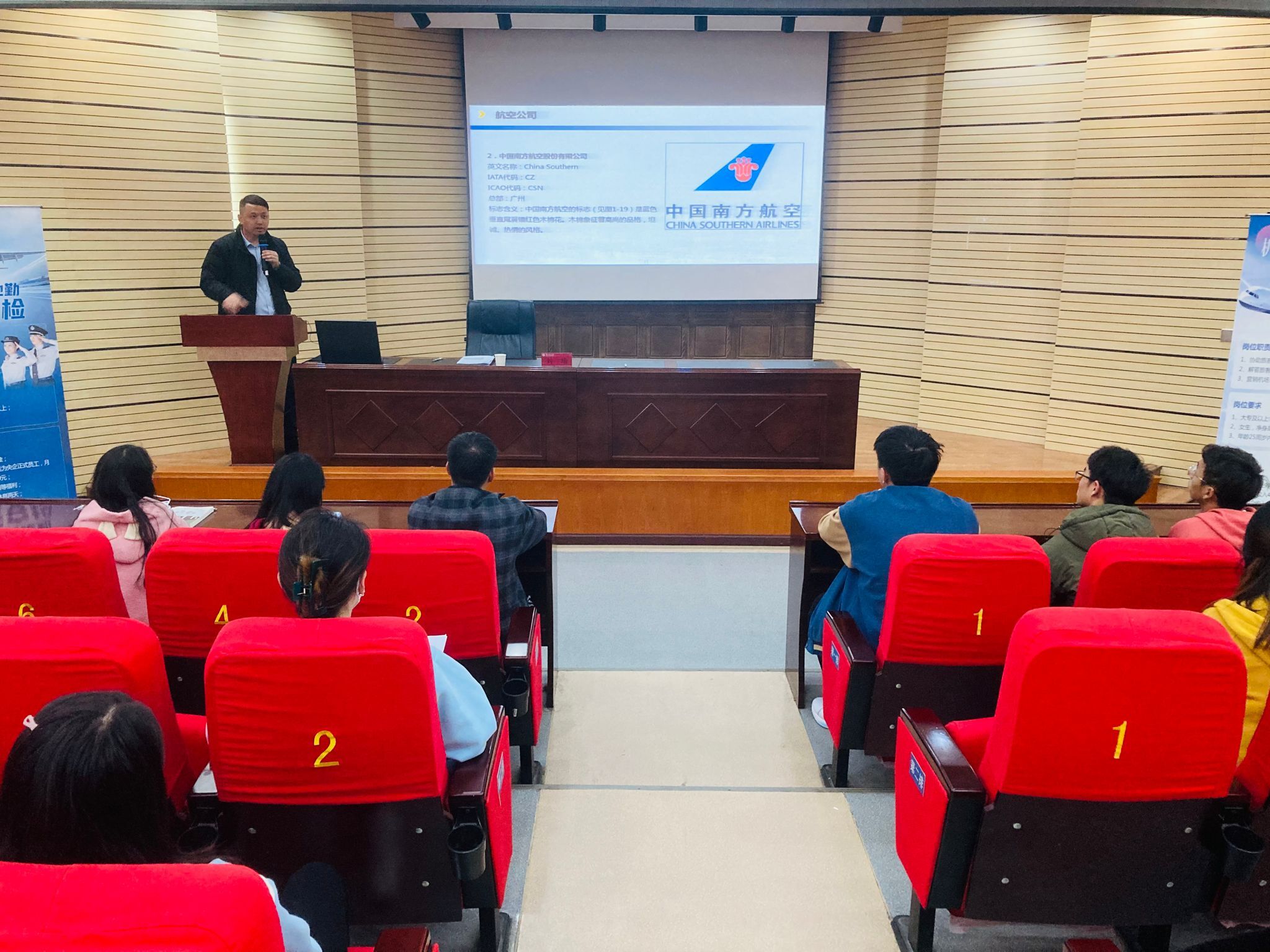 讲座中刘瑜不仅介绍了民航系统的基础知识、空勤和地勤岗位职责及待遇标准,还分析了当前国内高校应届毕业生严峻的就业形势,并且通过分享优秀应届毕业生民航岗位实习就业经历和成就帮助同学们修正职业规划中的误区,更加清晰的明确了未来职业发展之路。