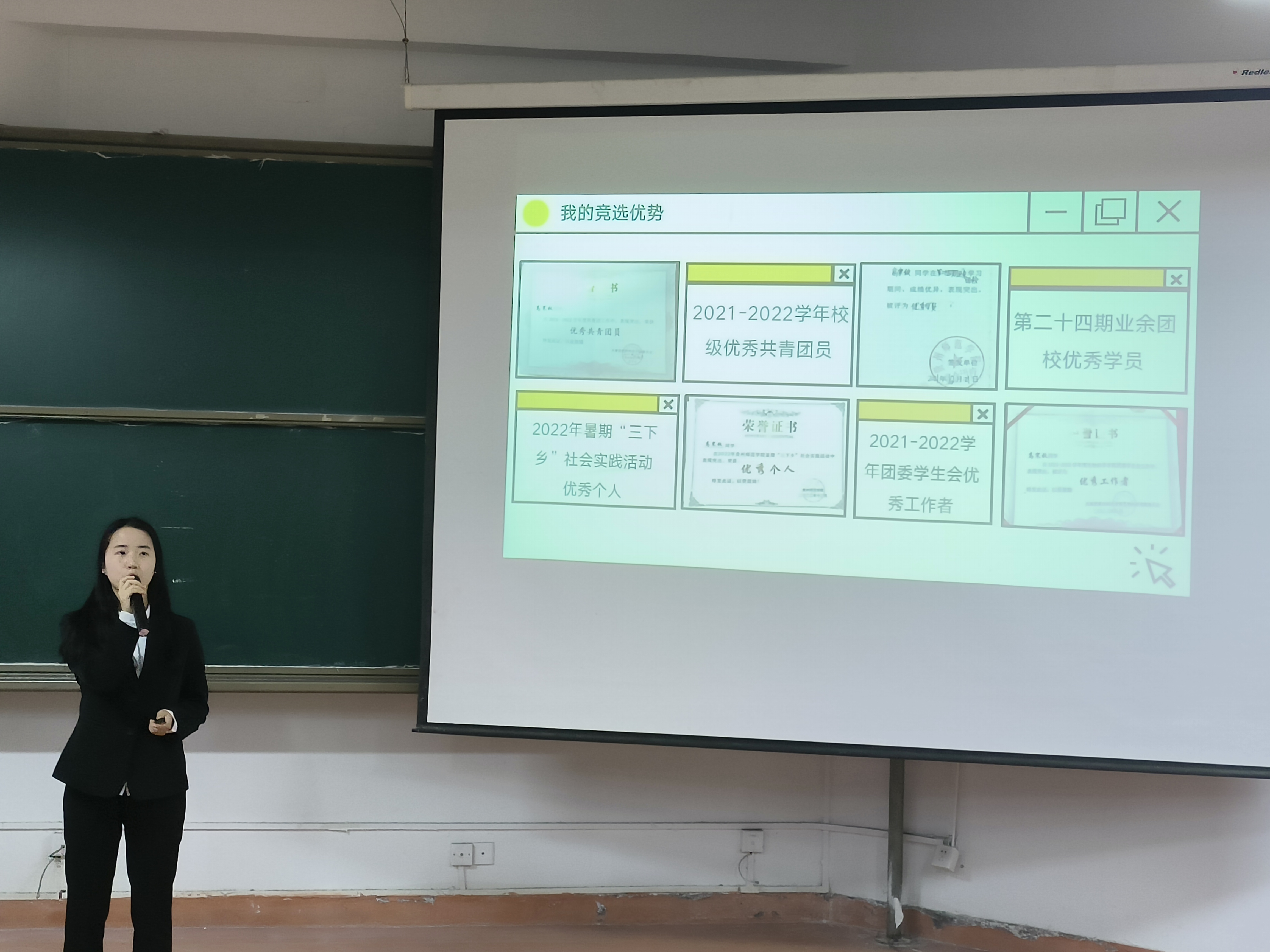 本次换届大会在团歌《光荣啊!中国共青团》的歌唱声中拉开帷幕。首先孙秀华对上一年度员工会的工作给予了肯定。同时,也对即将退出部门的成员表达衷心的感谢与诚挚的祝福。接着,梁涛也为员工会未来的发展提出期望与要求。演讲开始前,团委副书记进行团委工作汇报,员工会主席叶毅然对在职期间的工作情况进行汇报。随后,各位候选人分别从自身特点,对部门的认知,对部门的工作安排等方面做了简短的演讲。演讲结束后,秉承着民主公平公正的原则,老师,主席团,班干,干事等以不同占比为各位候选人投票。会终,党委副书记王珏对本次大会做总结发言。她对员工会寄予众望,并且希望员工会成员能够认可自己的职位,工作之余开拓自己的视野,提高与他人合作的能力,扎扎实实地展开工作,用行动为同学们服务。